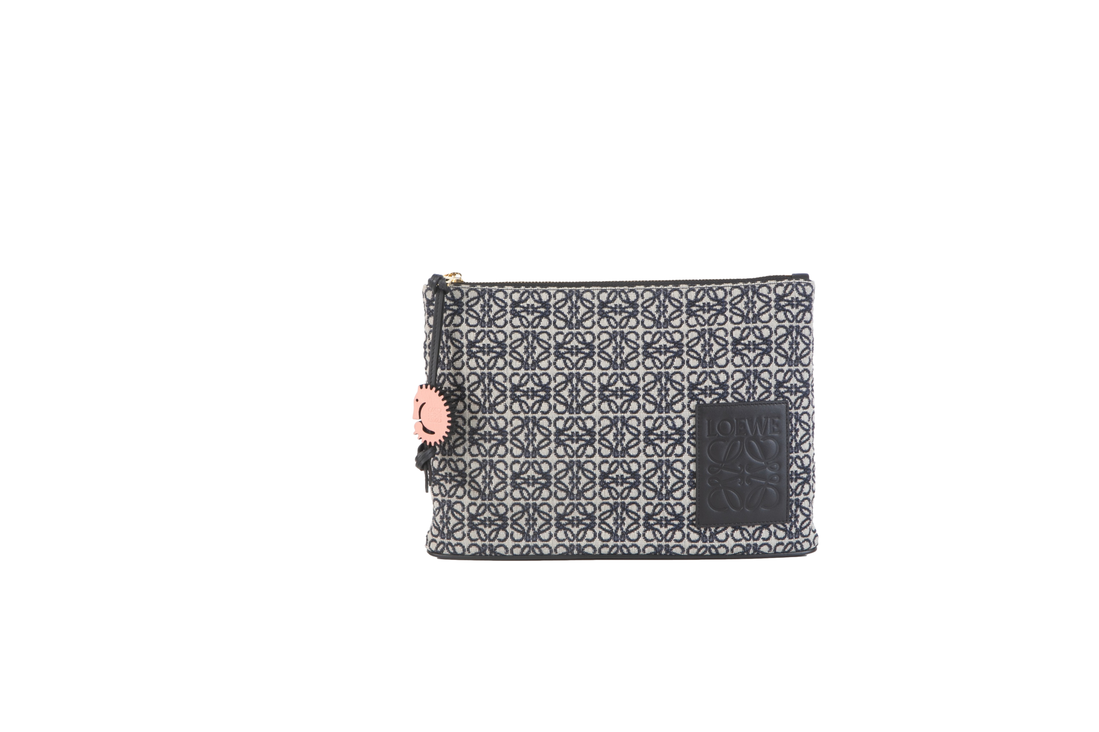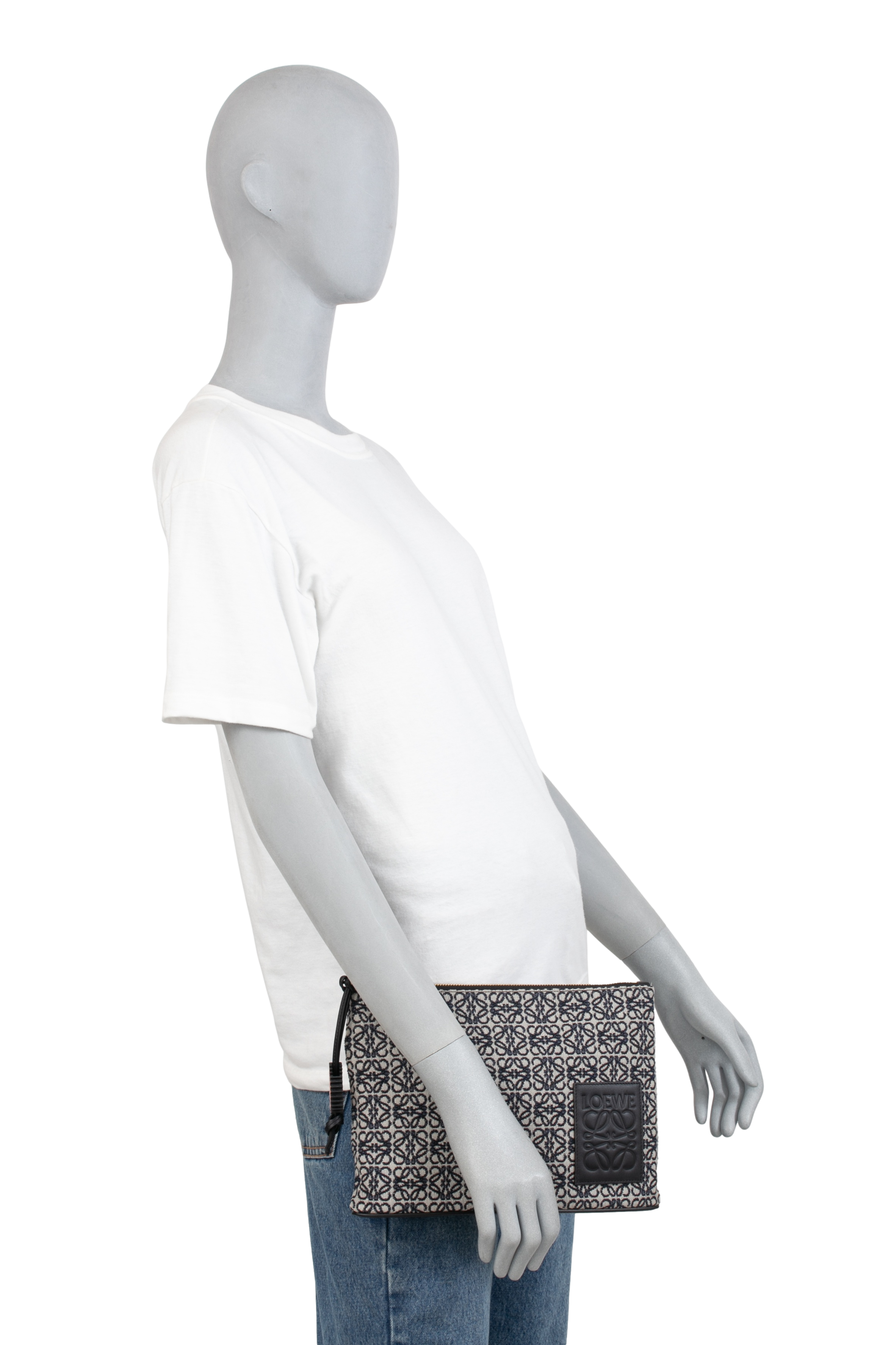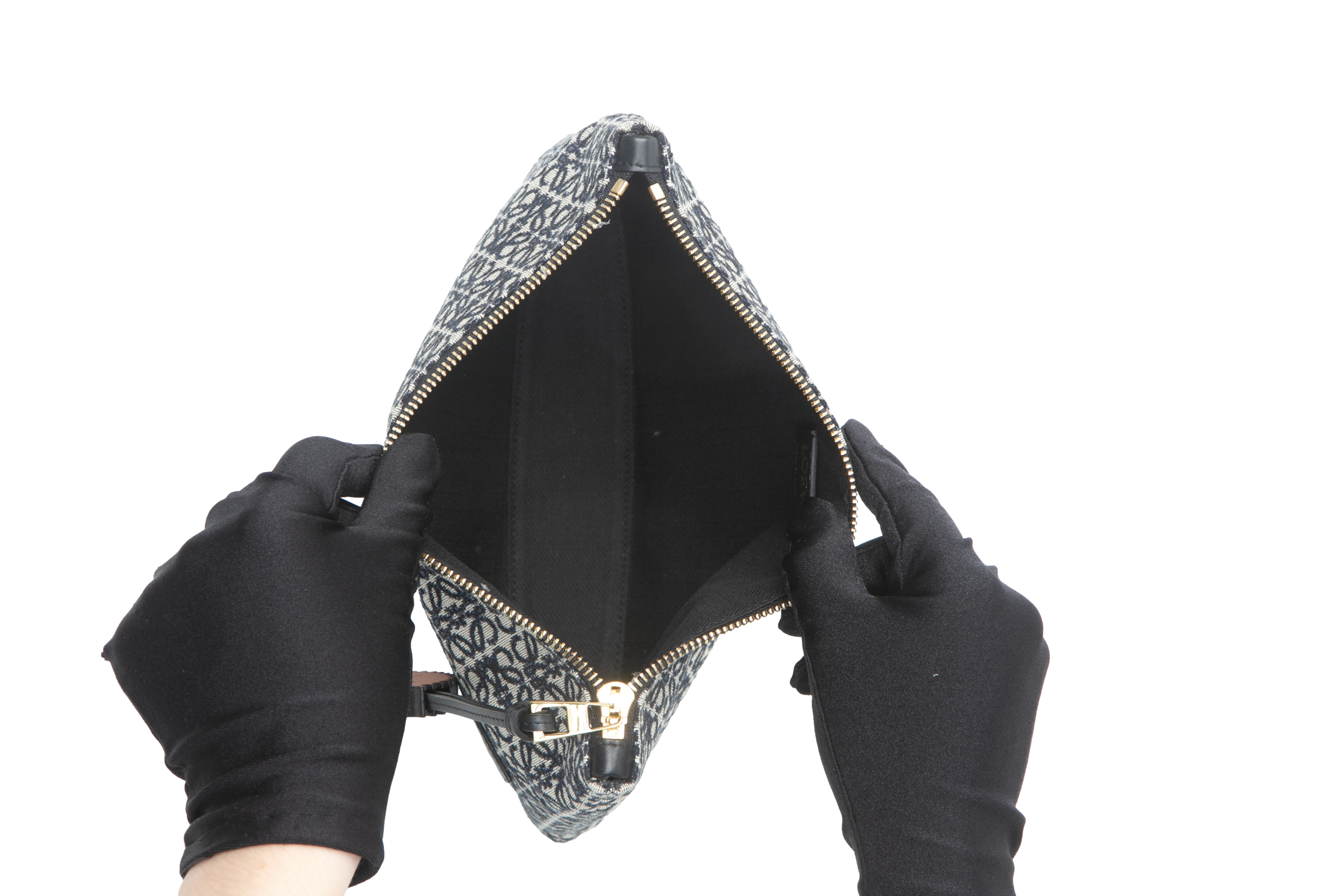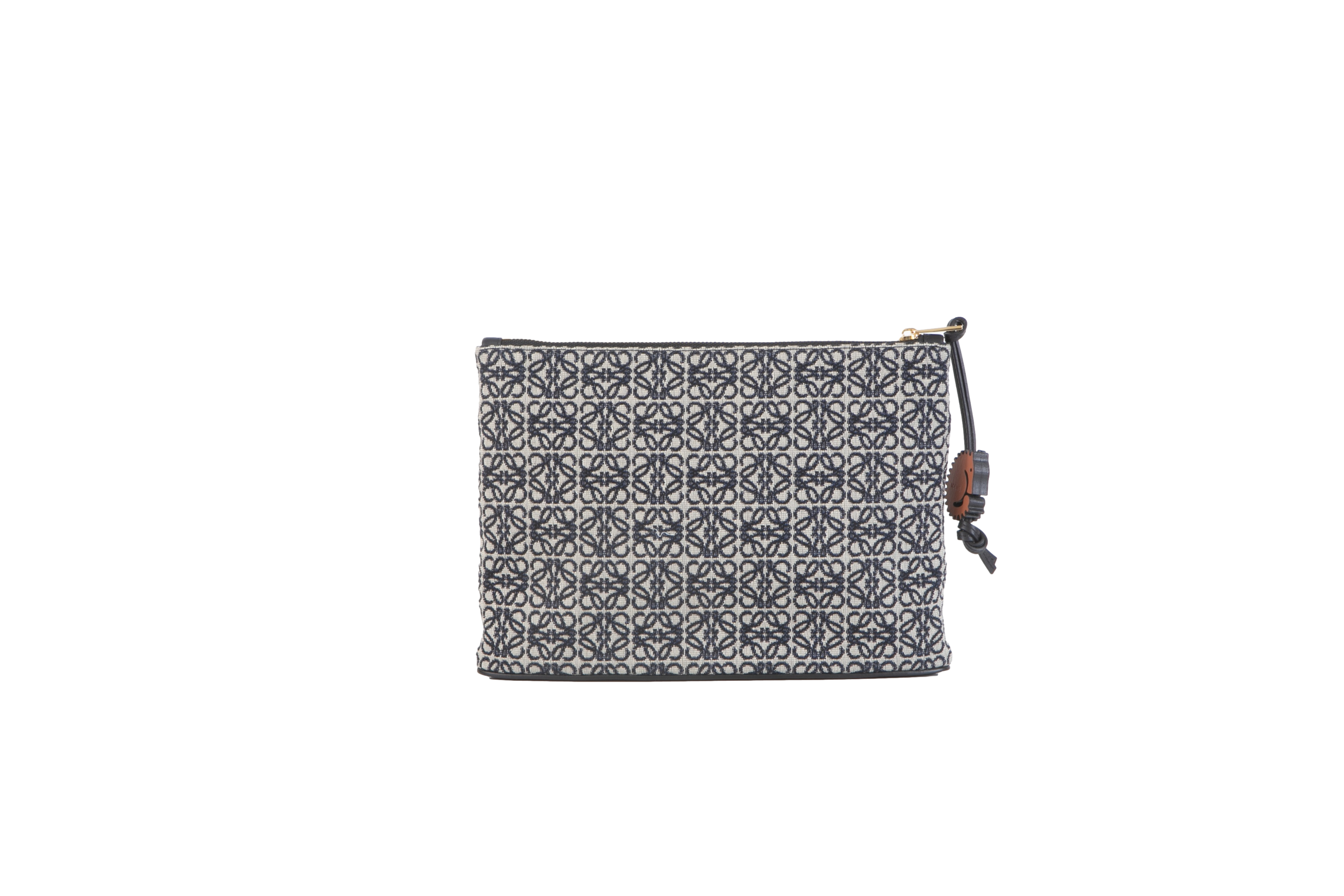 A bolsa apresenta o icônico logotipo "Anagram" da Loewe, embutido ou estampado de forma discreta em uma das superfícies. Este detalhe adiciona um toque de exclusividade e autenticidade ao design.