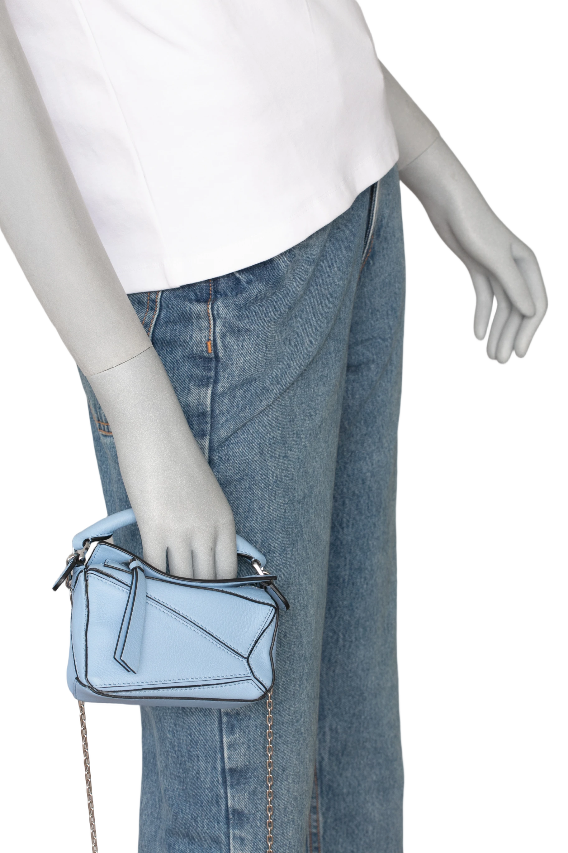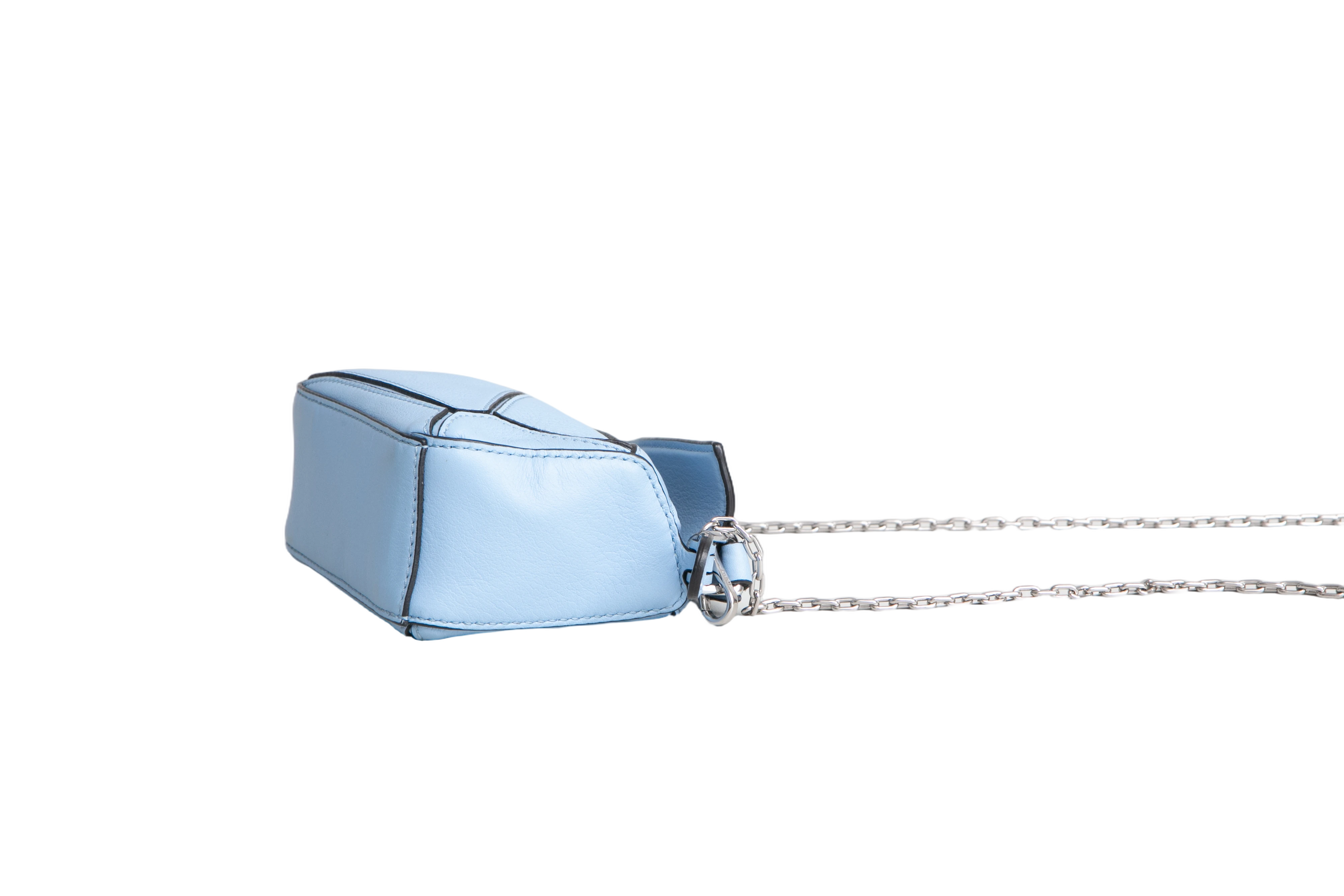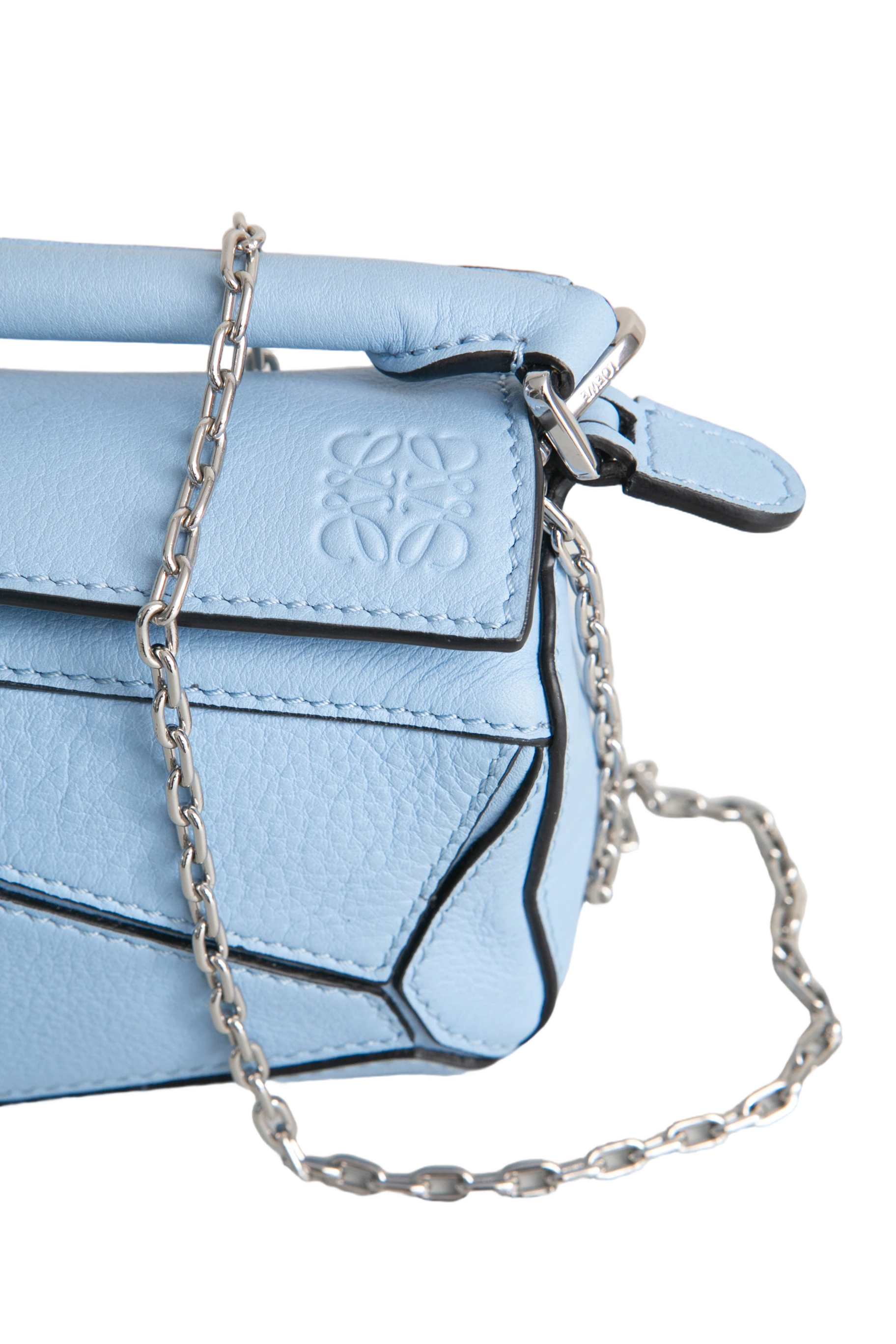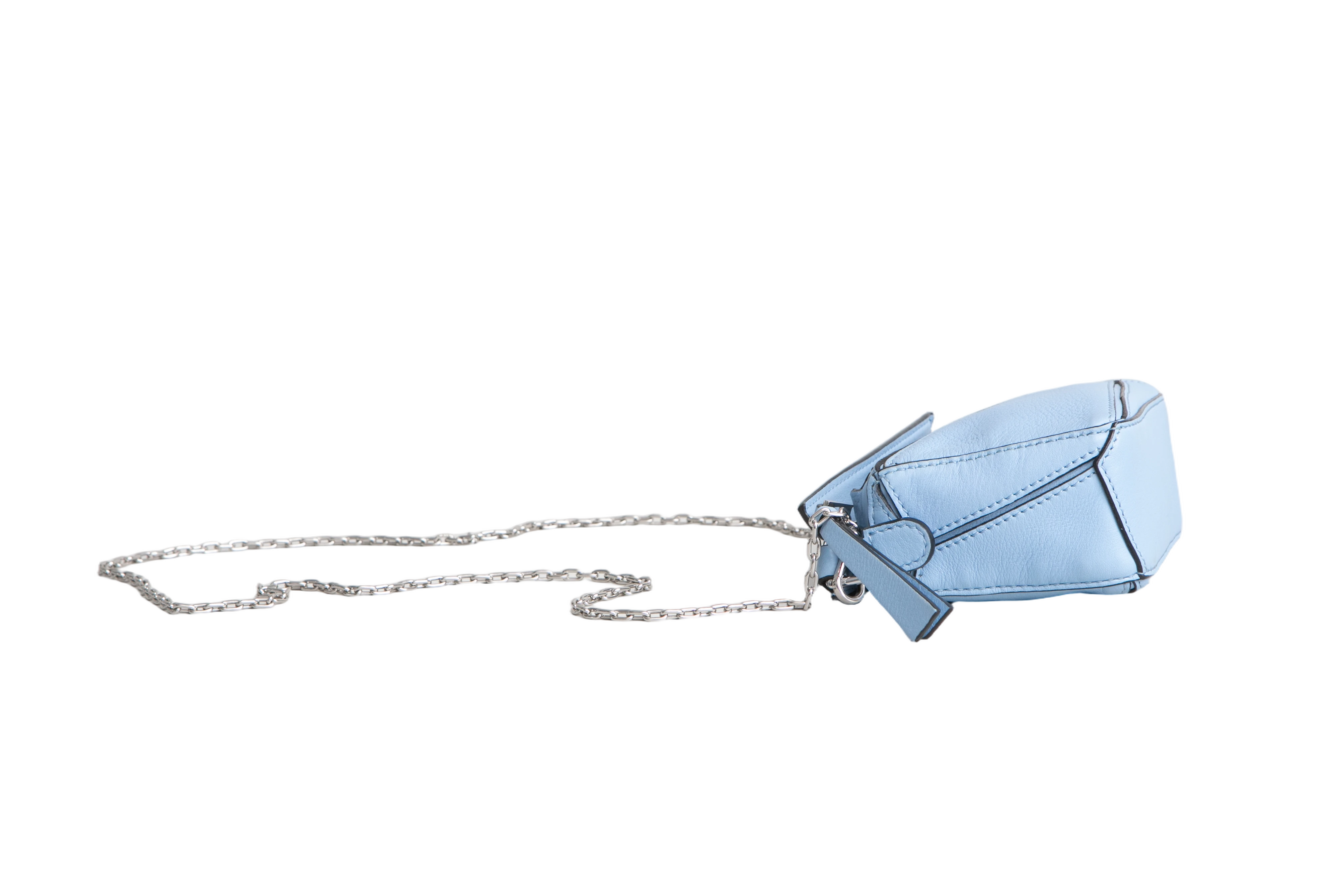Loewe Puzzle Bag Nano Light Blue. Peça em perfeito estado, possui pequenas manchas no couro.