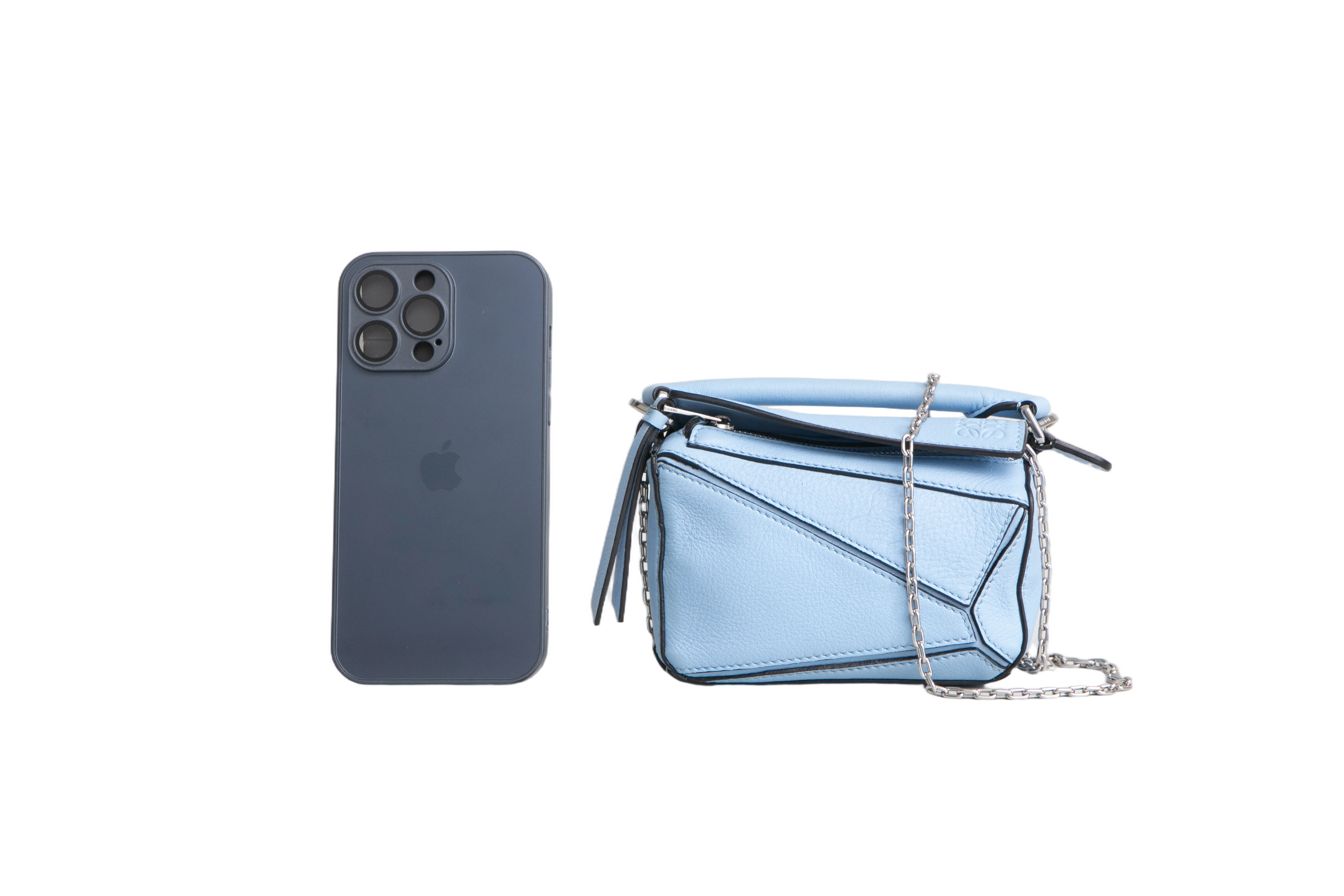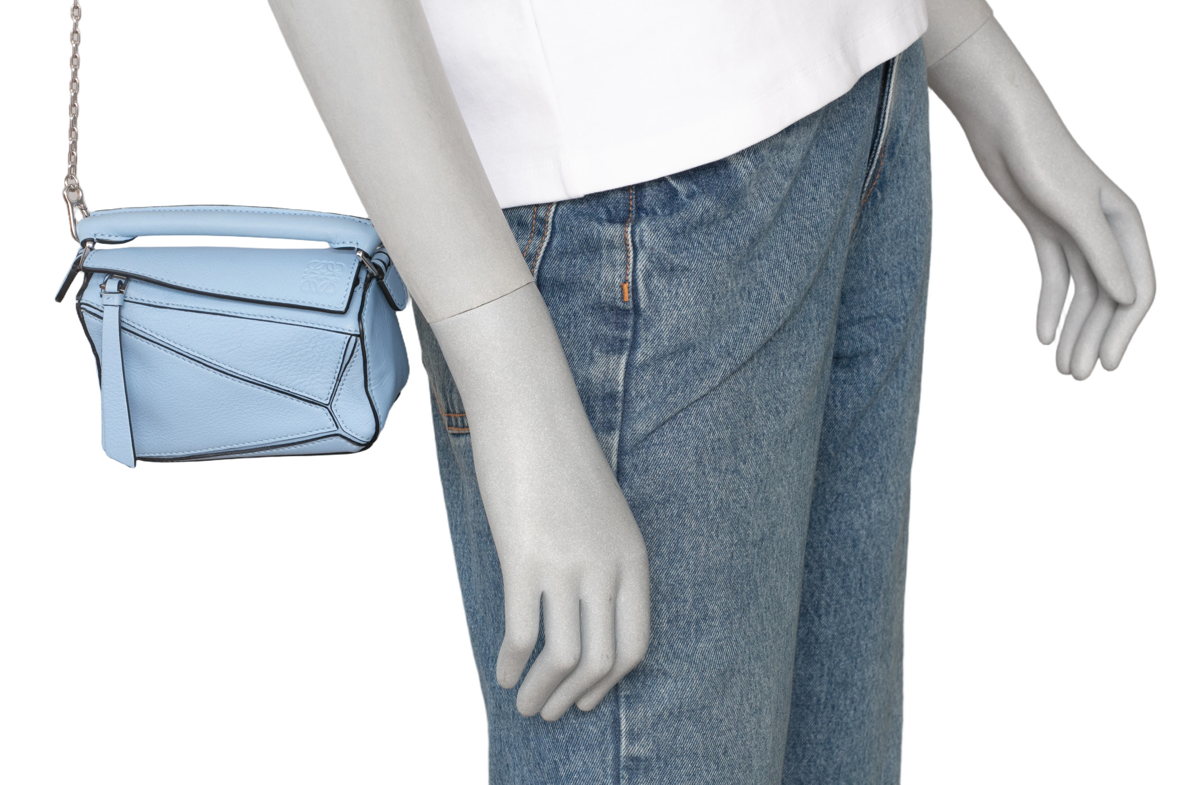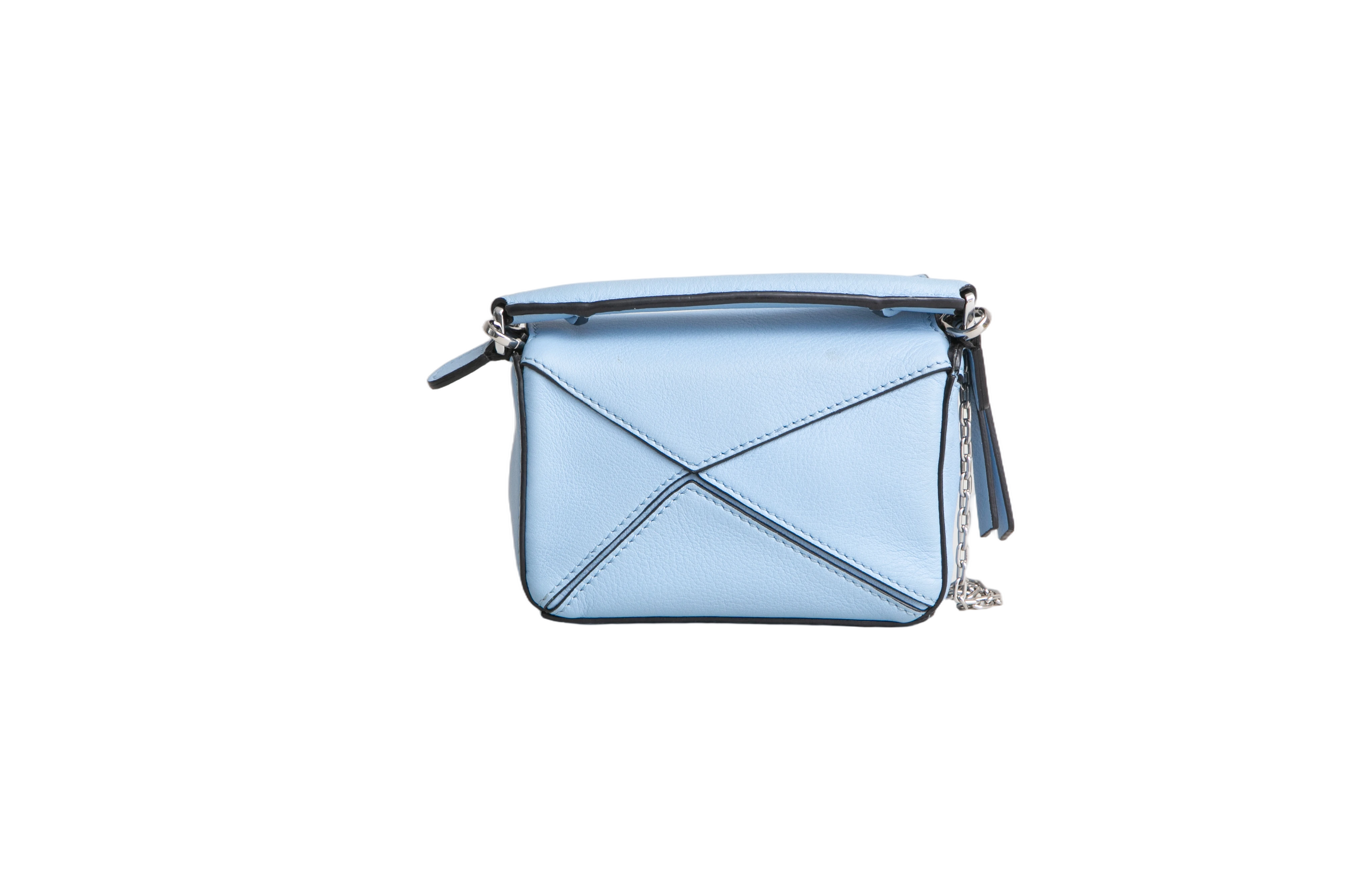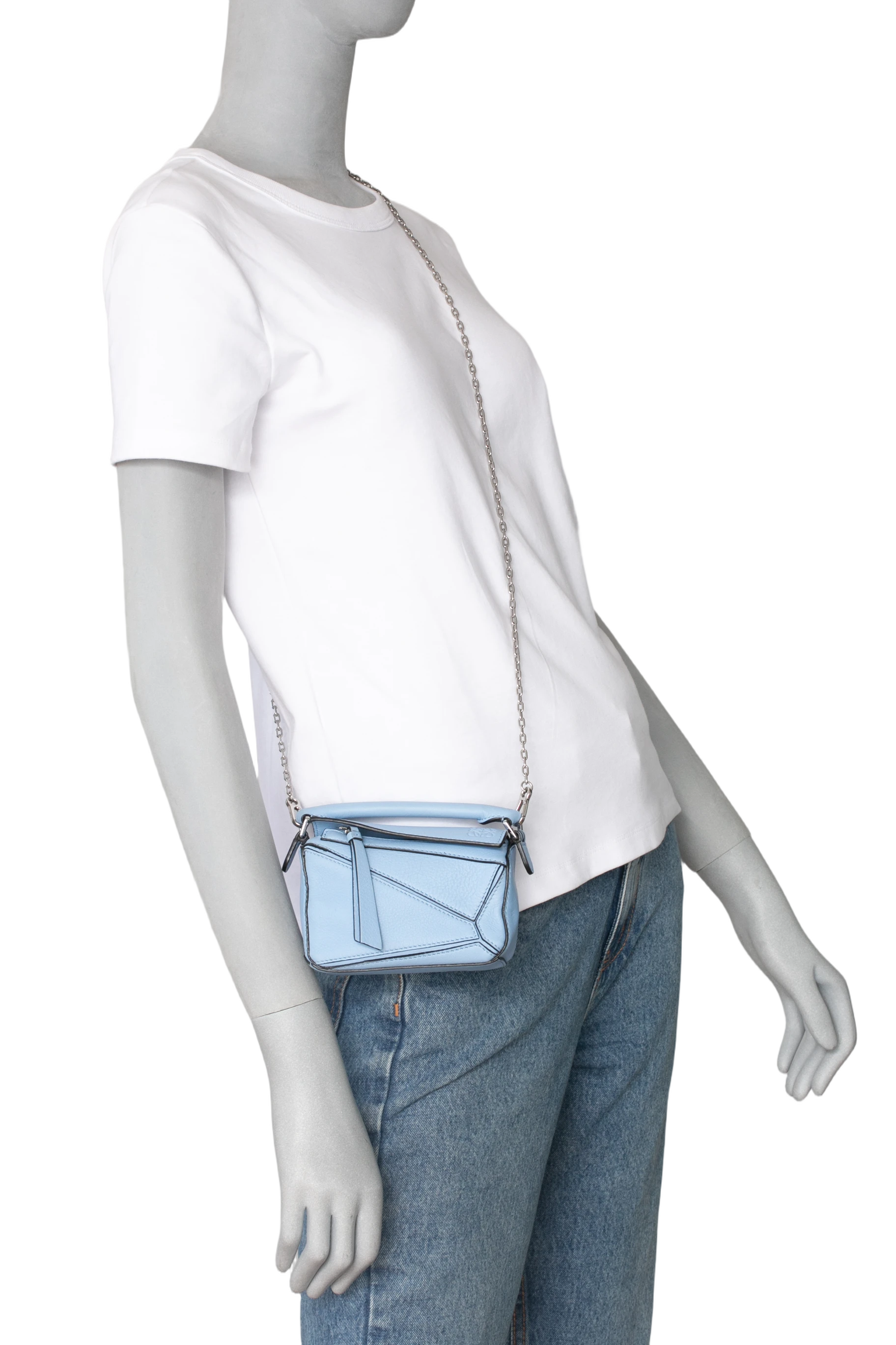Loewe Puzzle Bag Nano Light Blue. Peça em perfeito estado, possui pequenas manchas no couro.