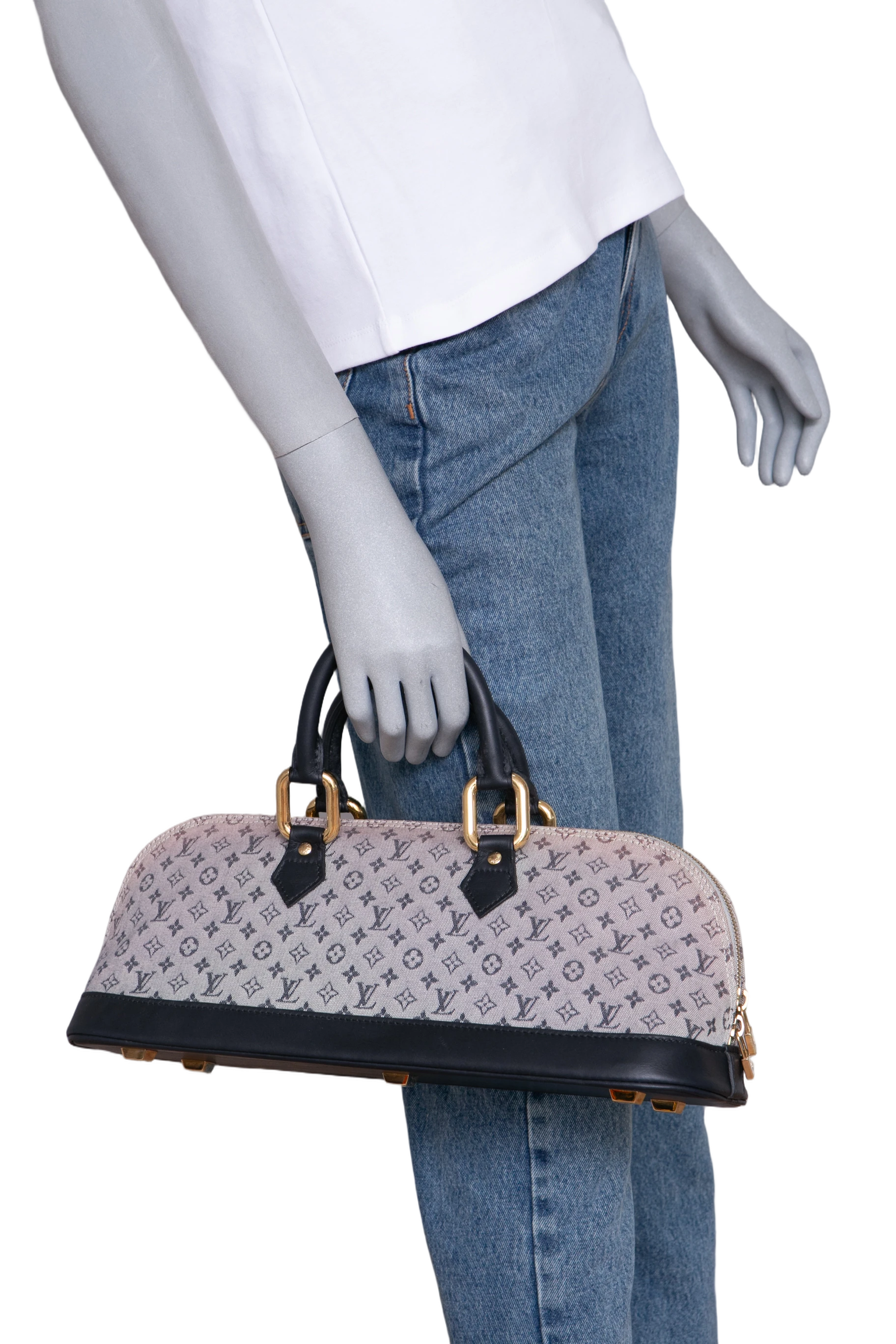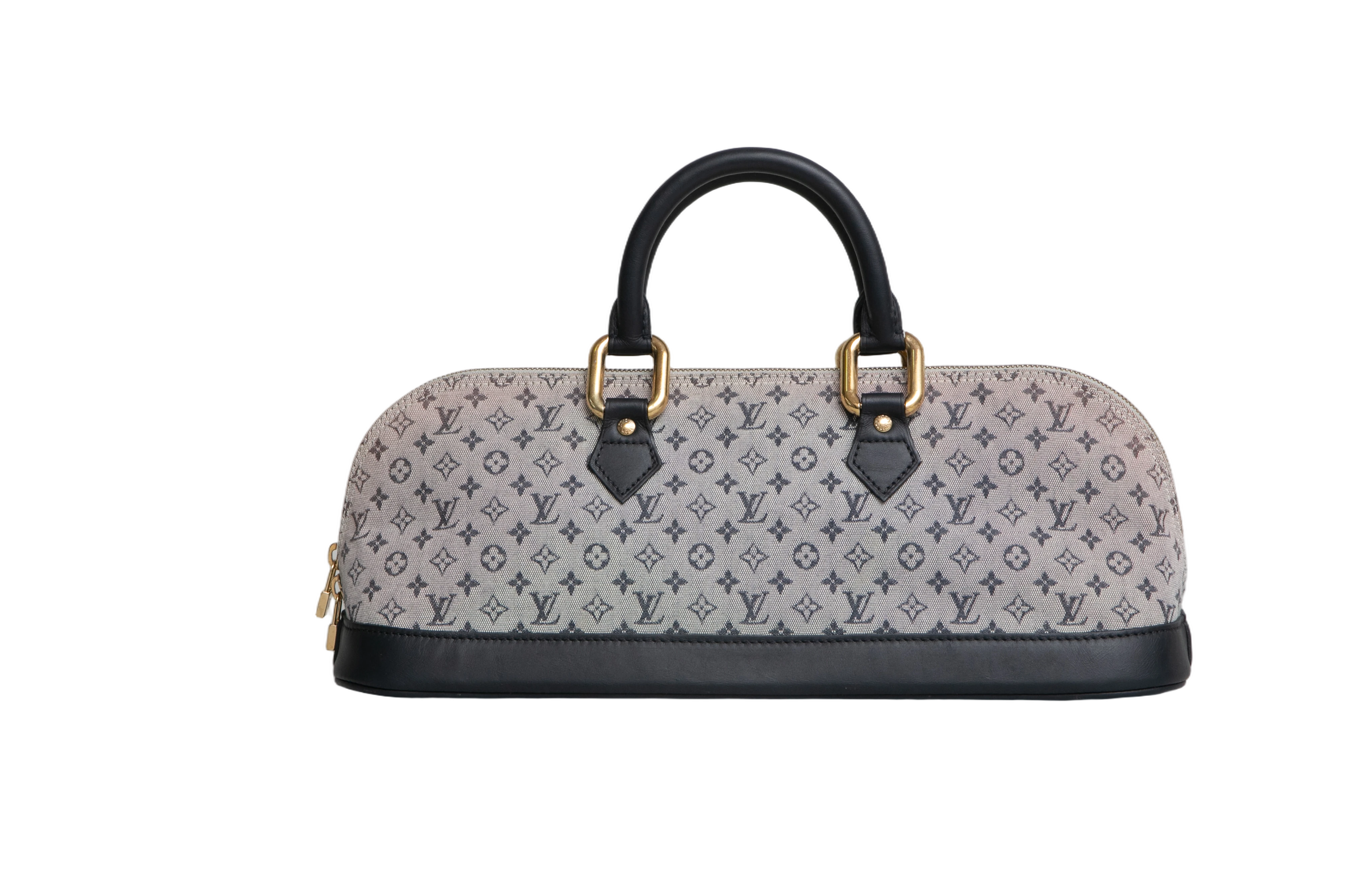 Bolsa em canvas com monograma LV estampado e acabamento em couro, somente alça de mão em couro, para uso top handle ou antebraço.
