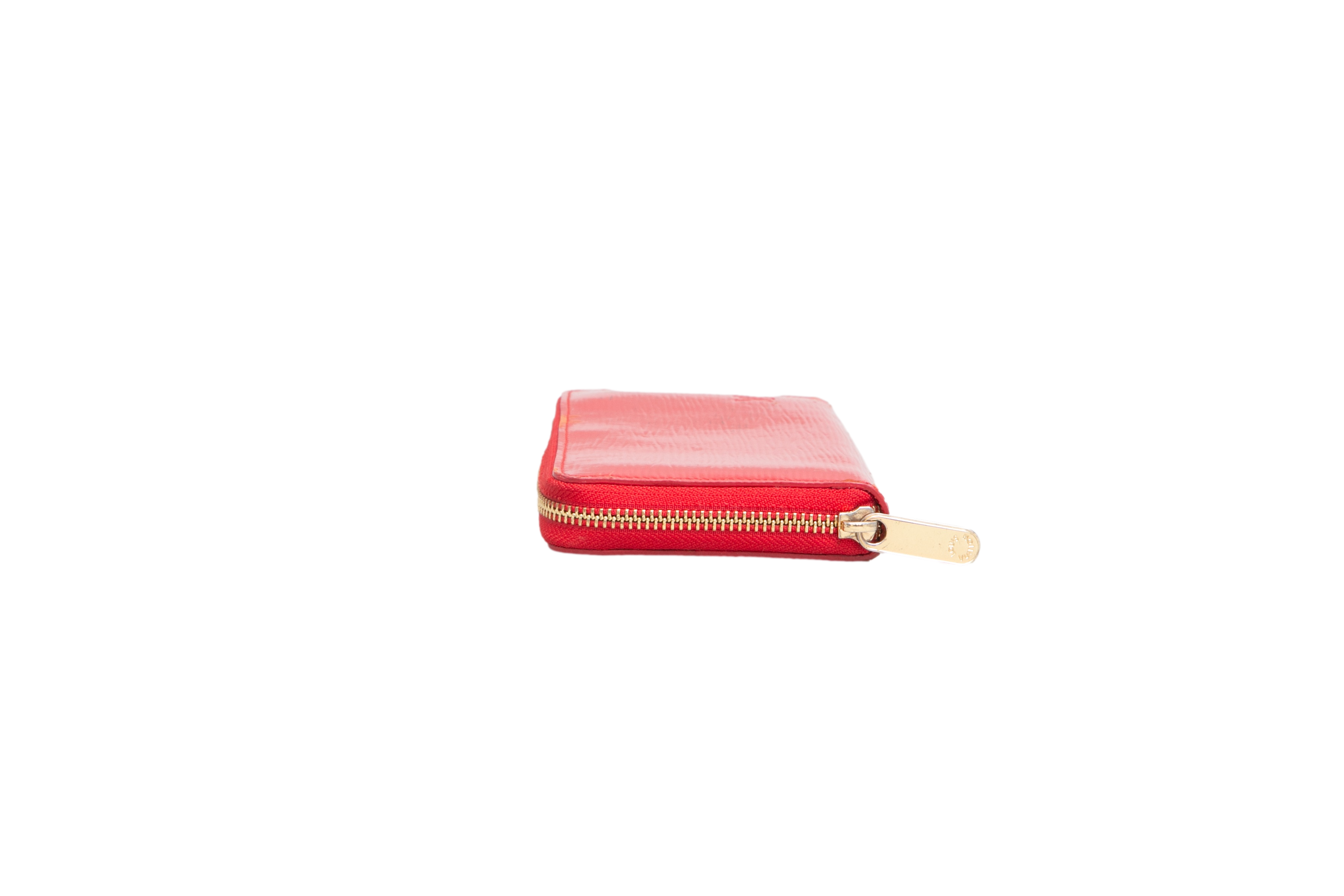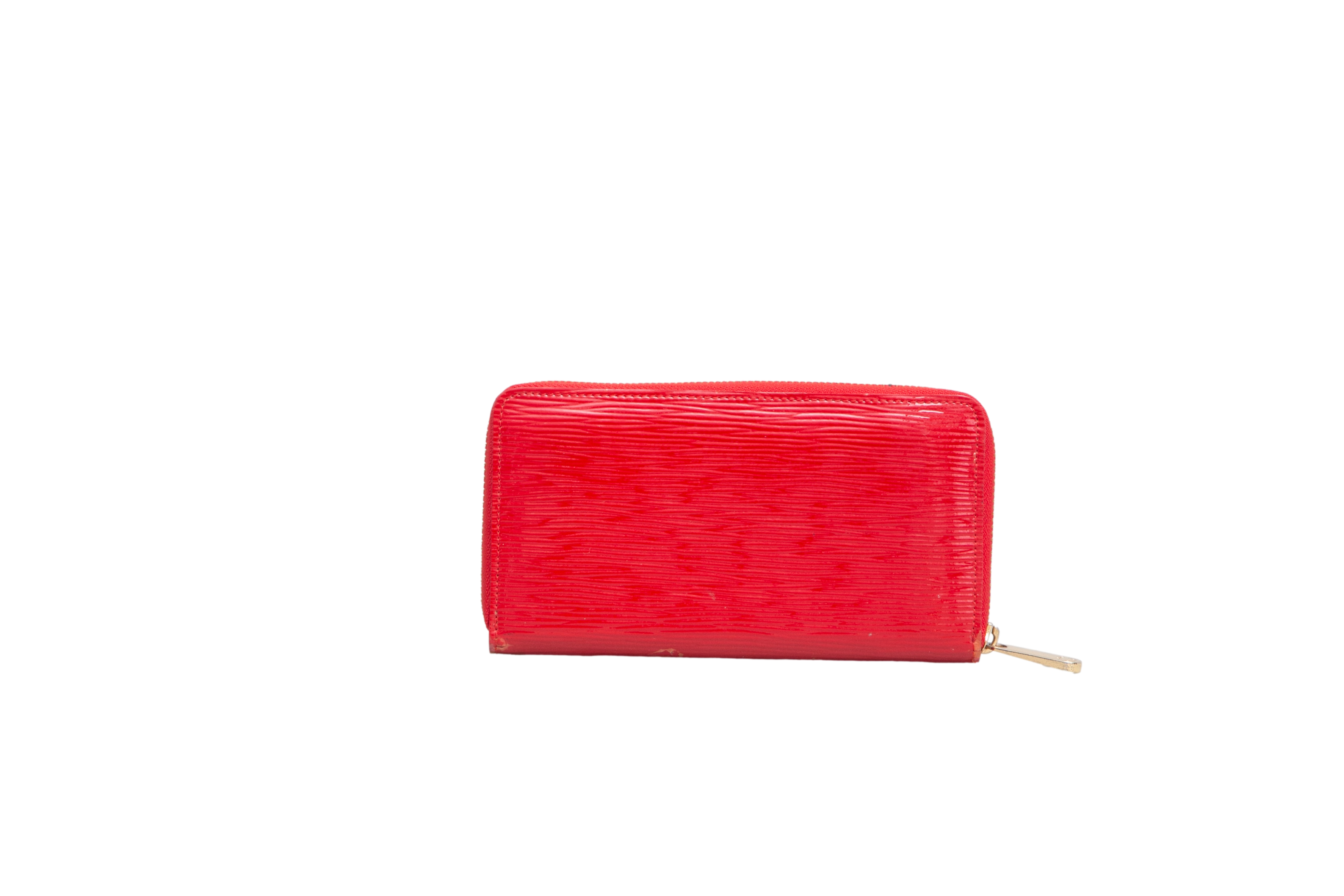 LV Wallet Long Zipper Patent EPI Red. Peça em bom estado possui manchas e sinais de uso no couro.