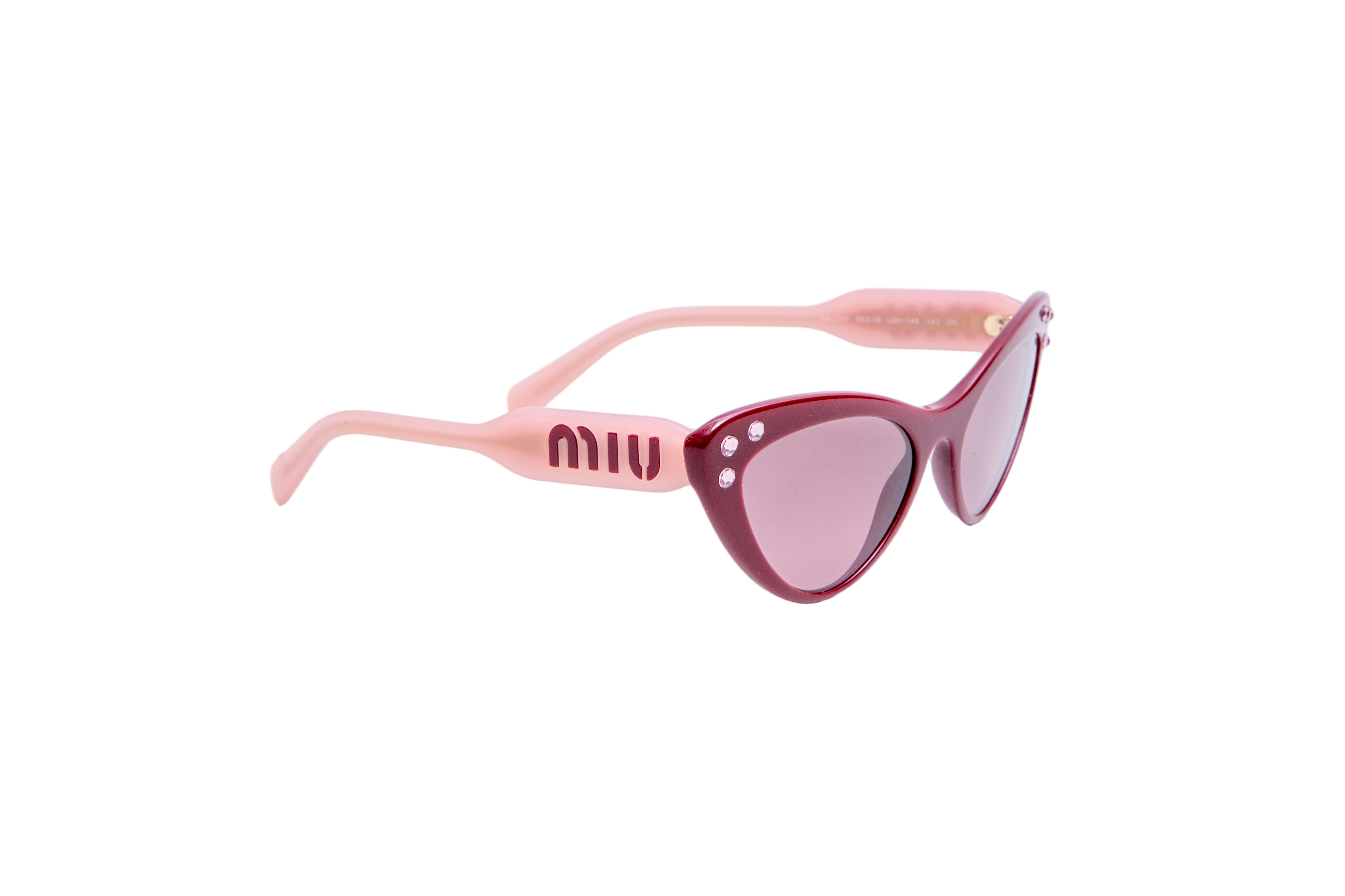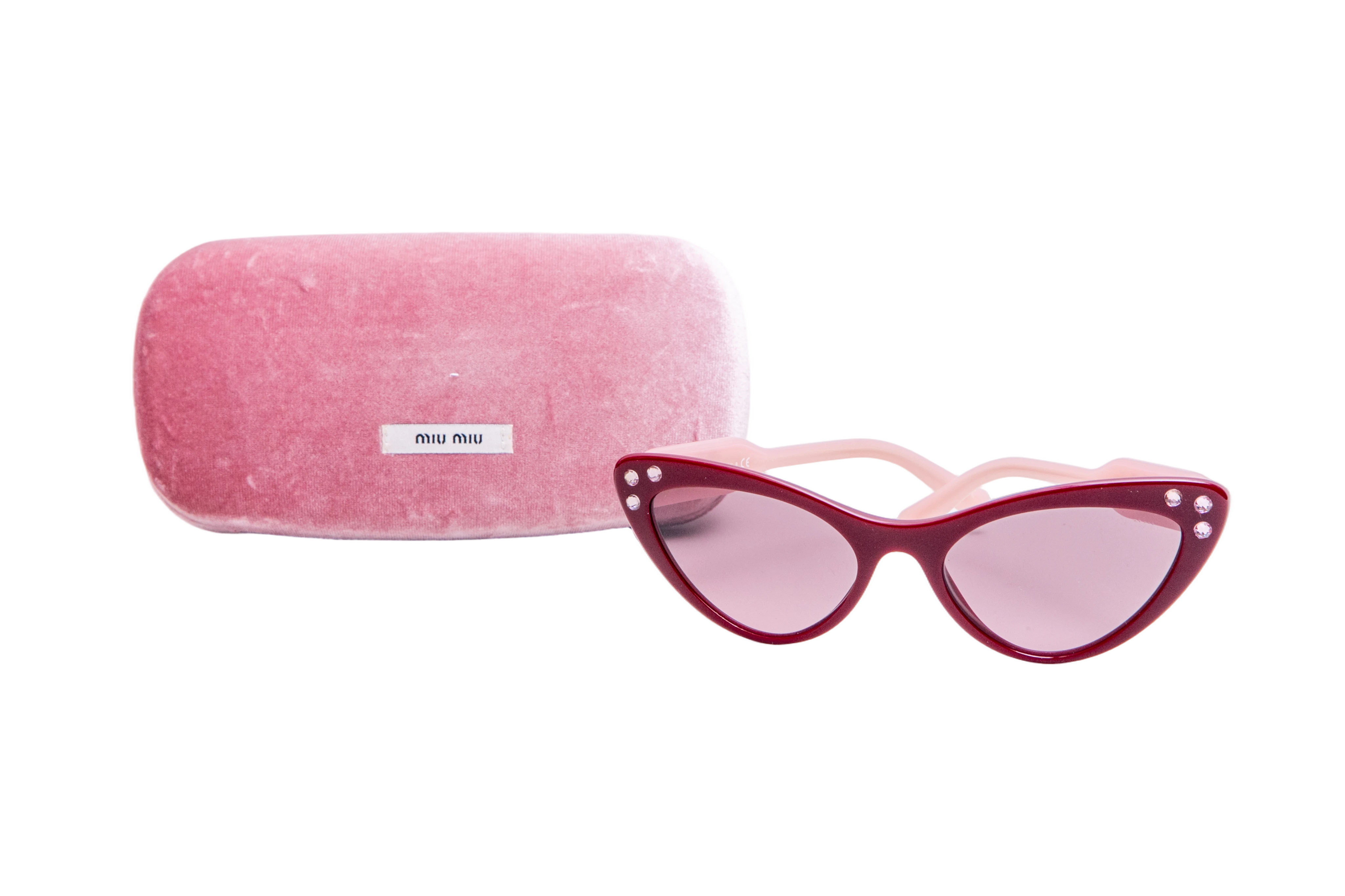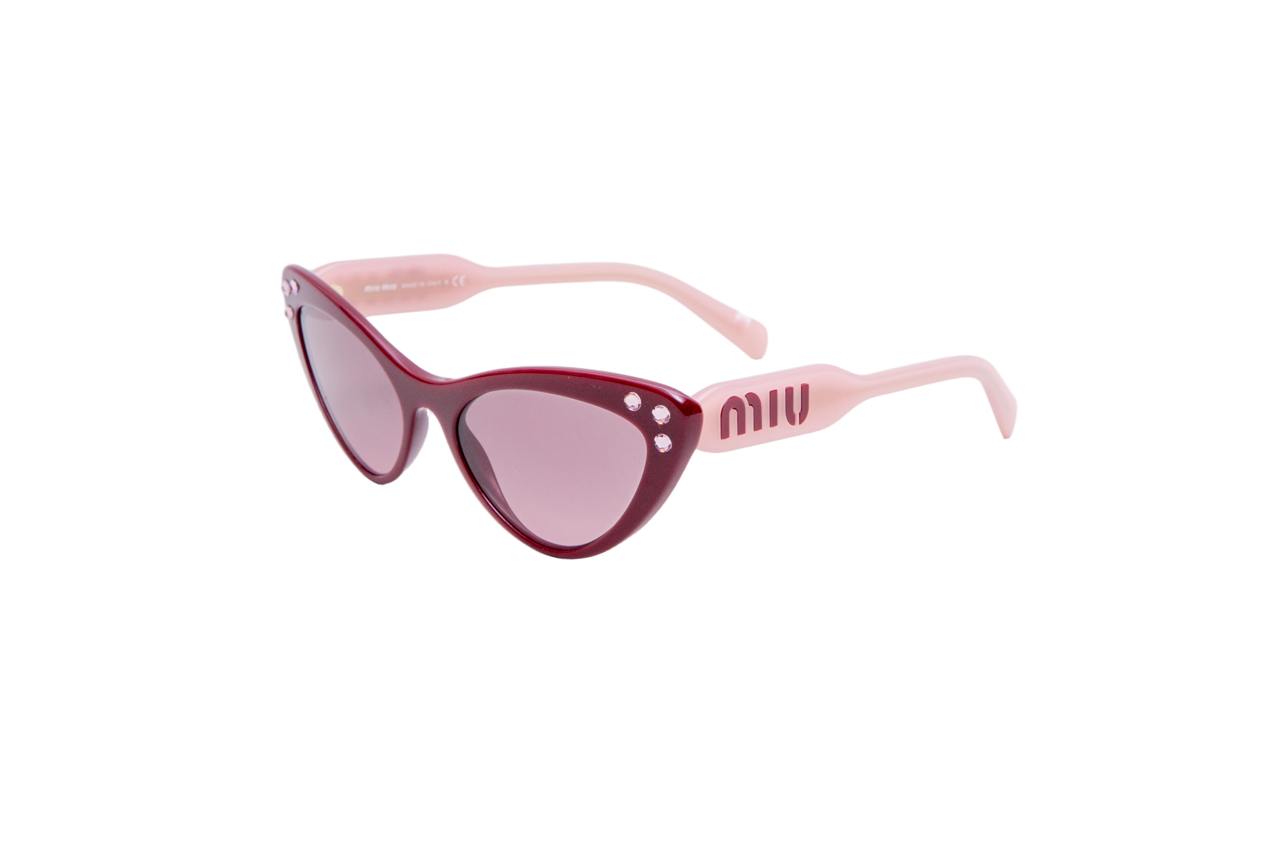 Miu Miu Cateye Acetate Crystal Burgundy/Rose. Peça em perfeito estado, pequenos sinais no acetato e lente.