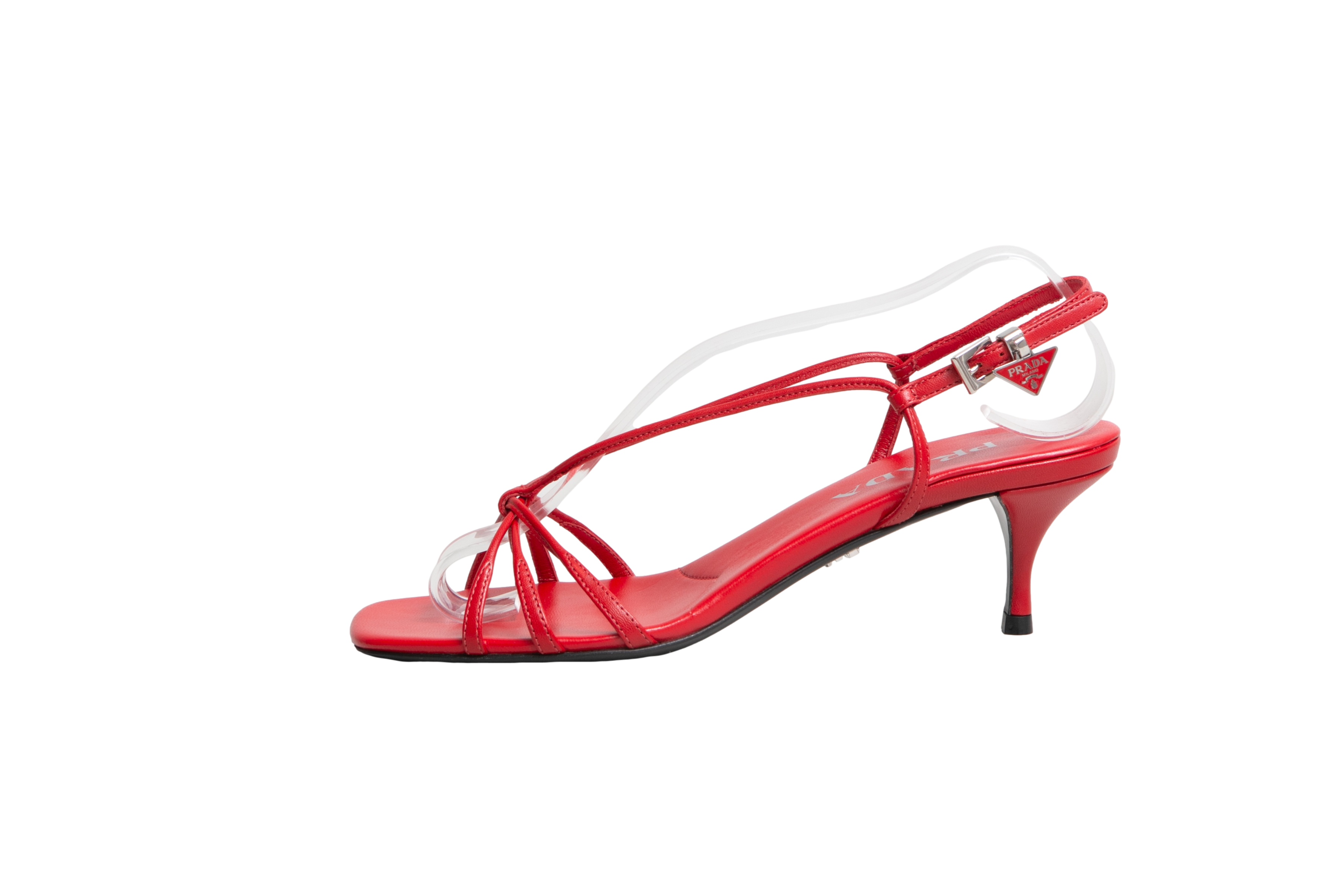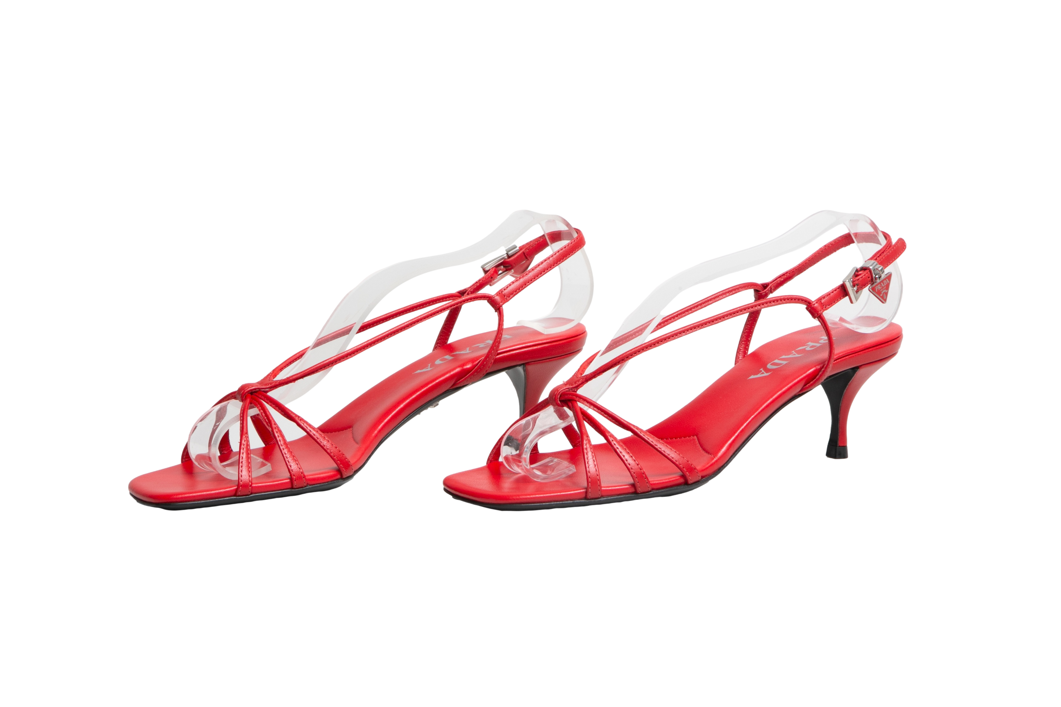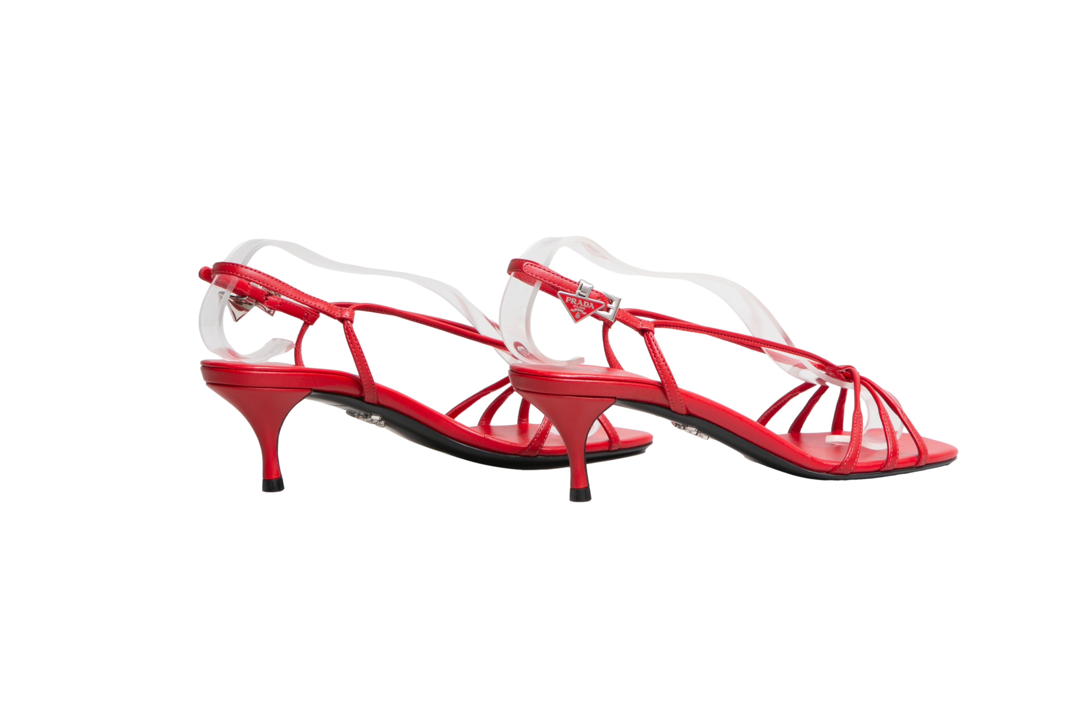 Prada 55mm Leather Red Sandals. Peça como nova, sem uso porém sem tag.