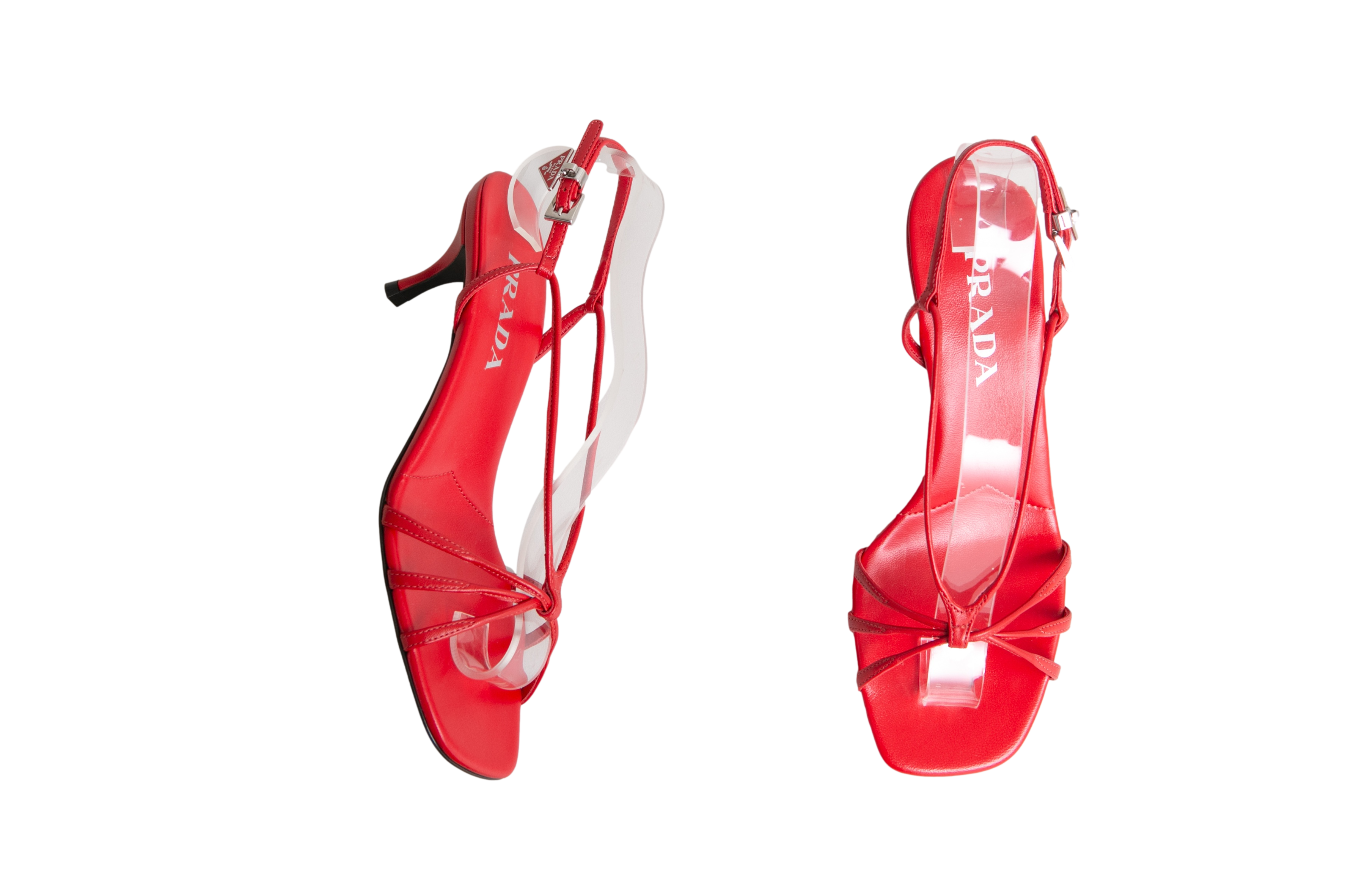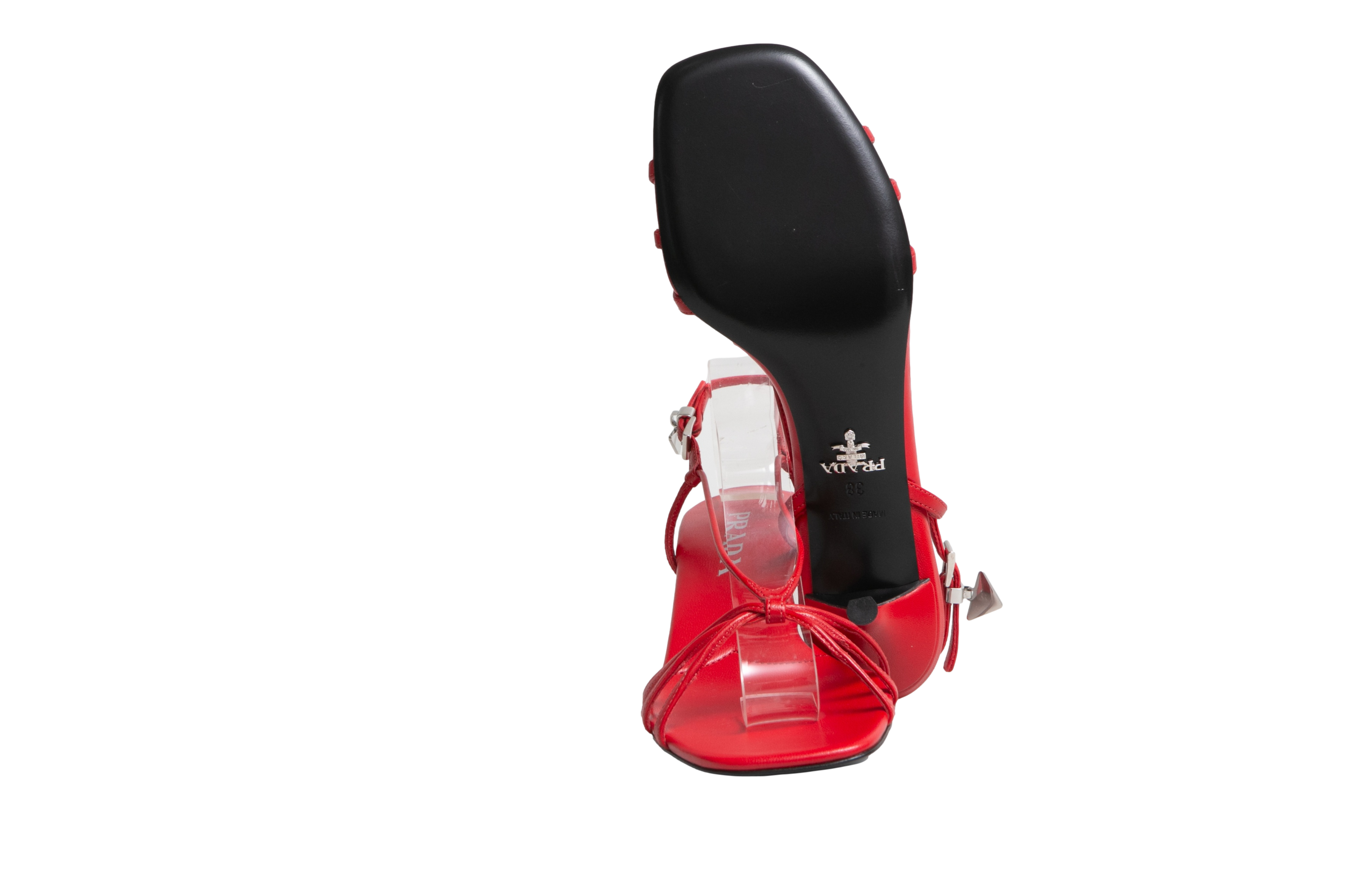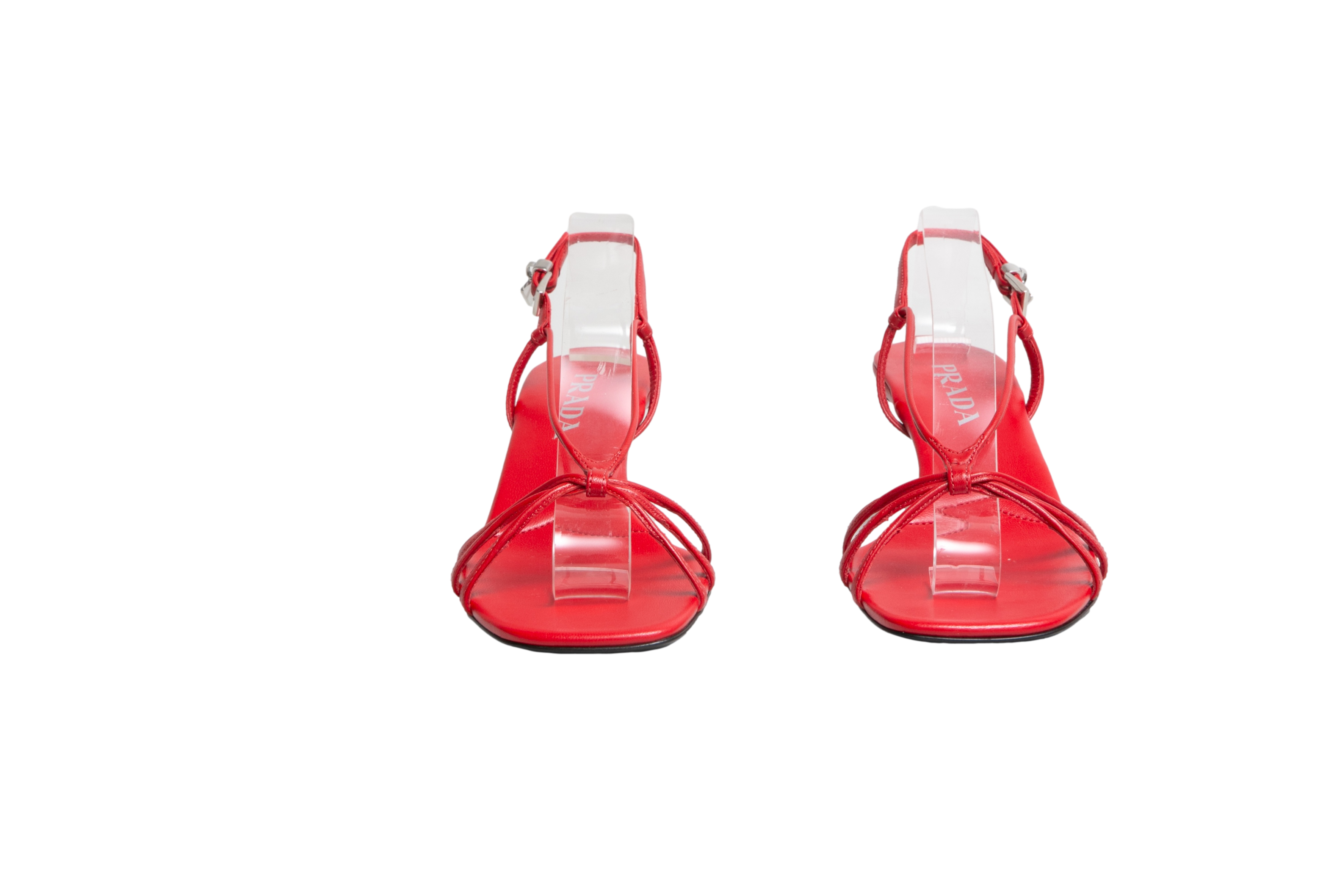 Prada 55mm Leather Red Sandals. Peça como nova, sem uso porém sem tag.
