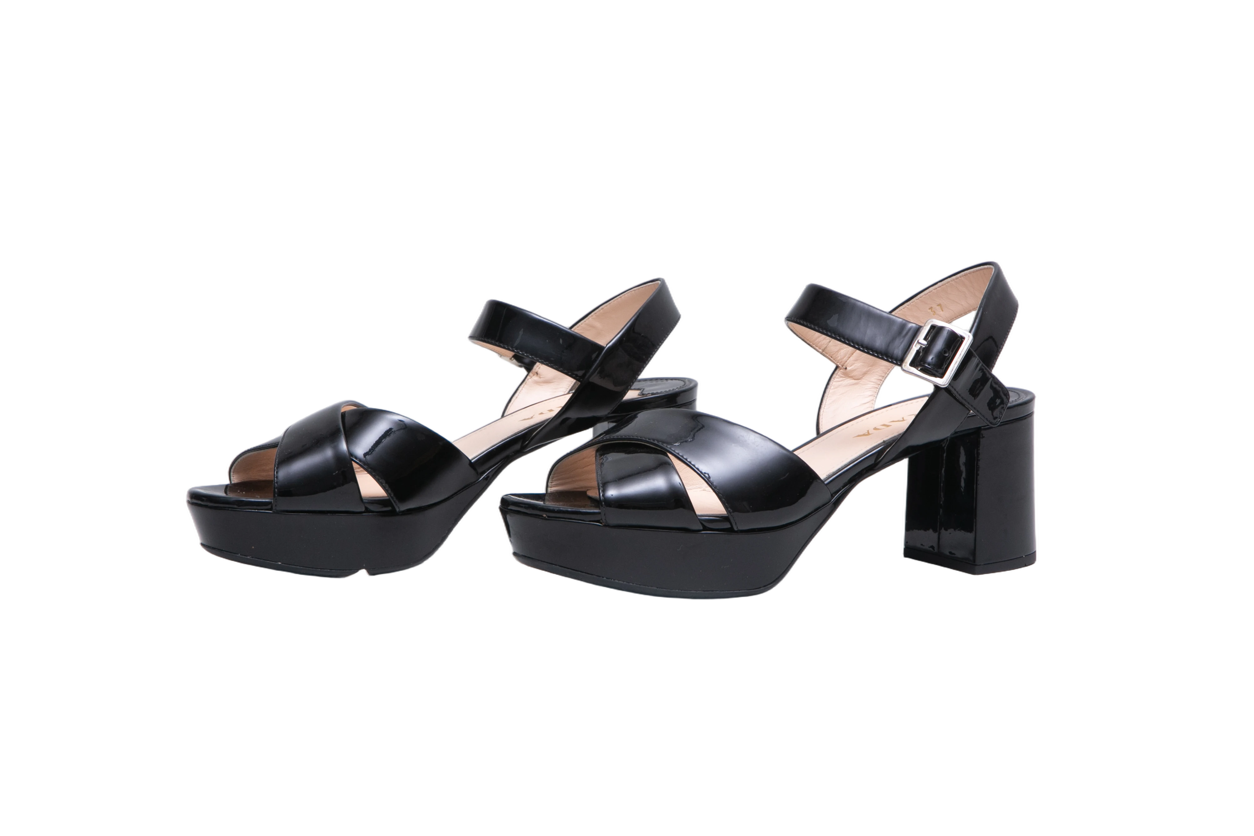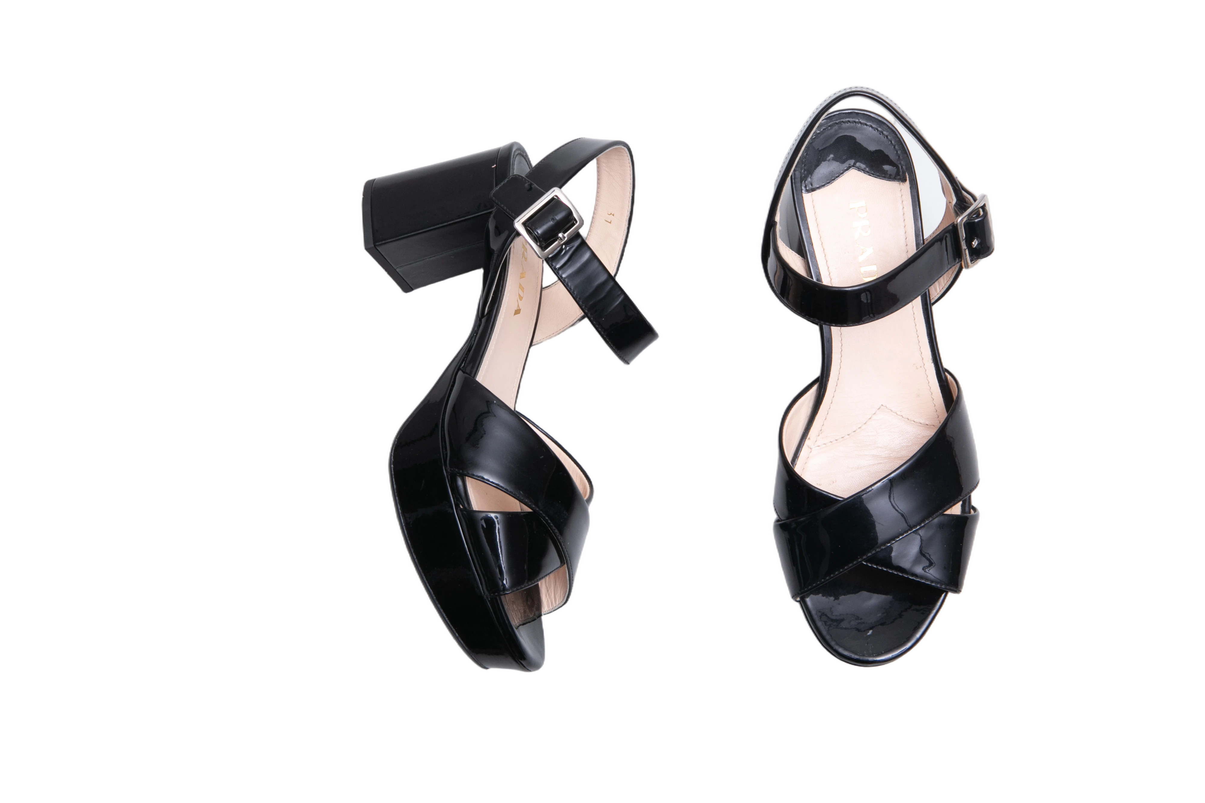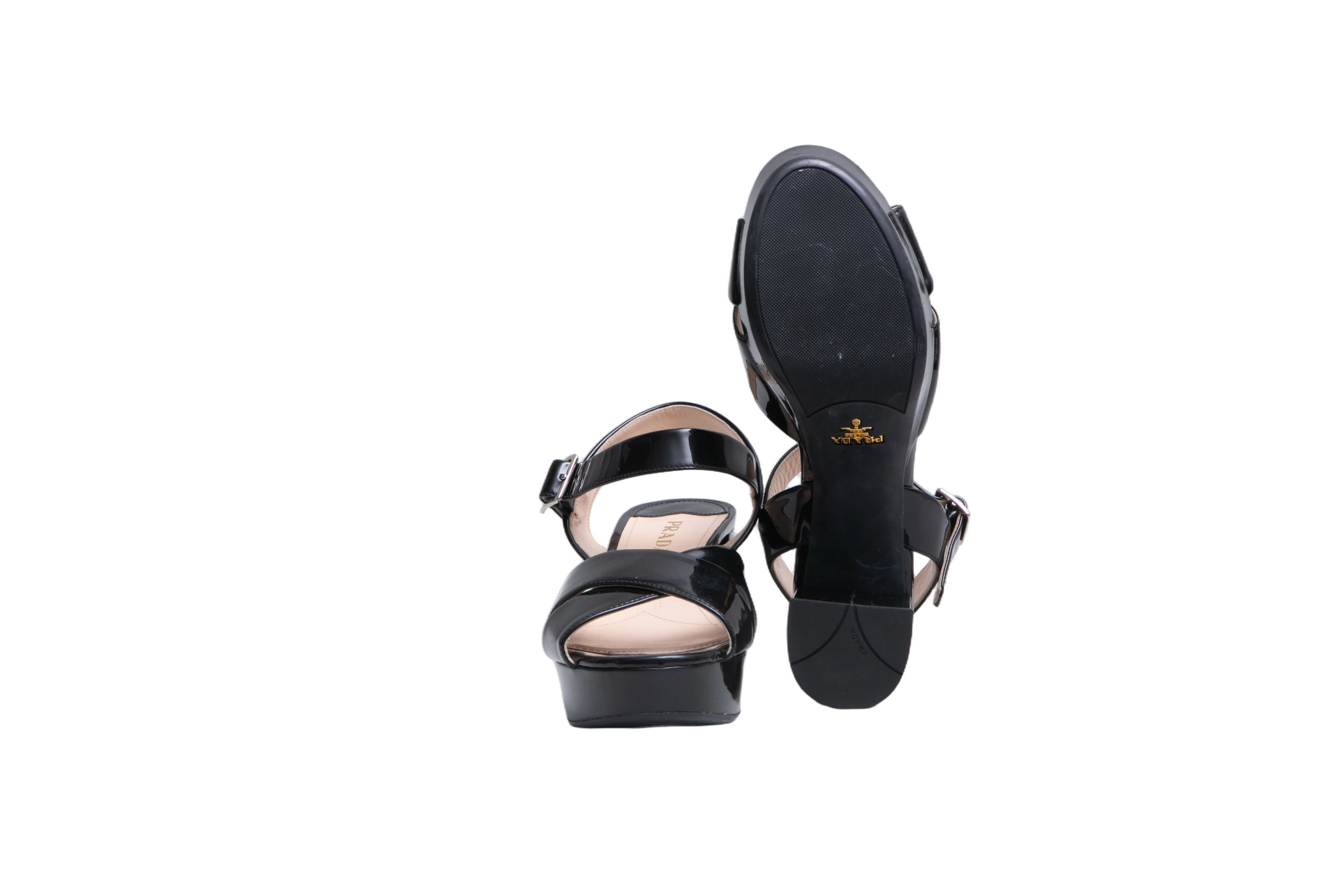 Prada Block Jump Patent Etheral Black. Peça em perfeito estado, possui pequenos sinais de uso na sola e palmilha.
