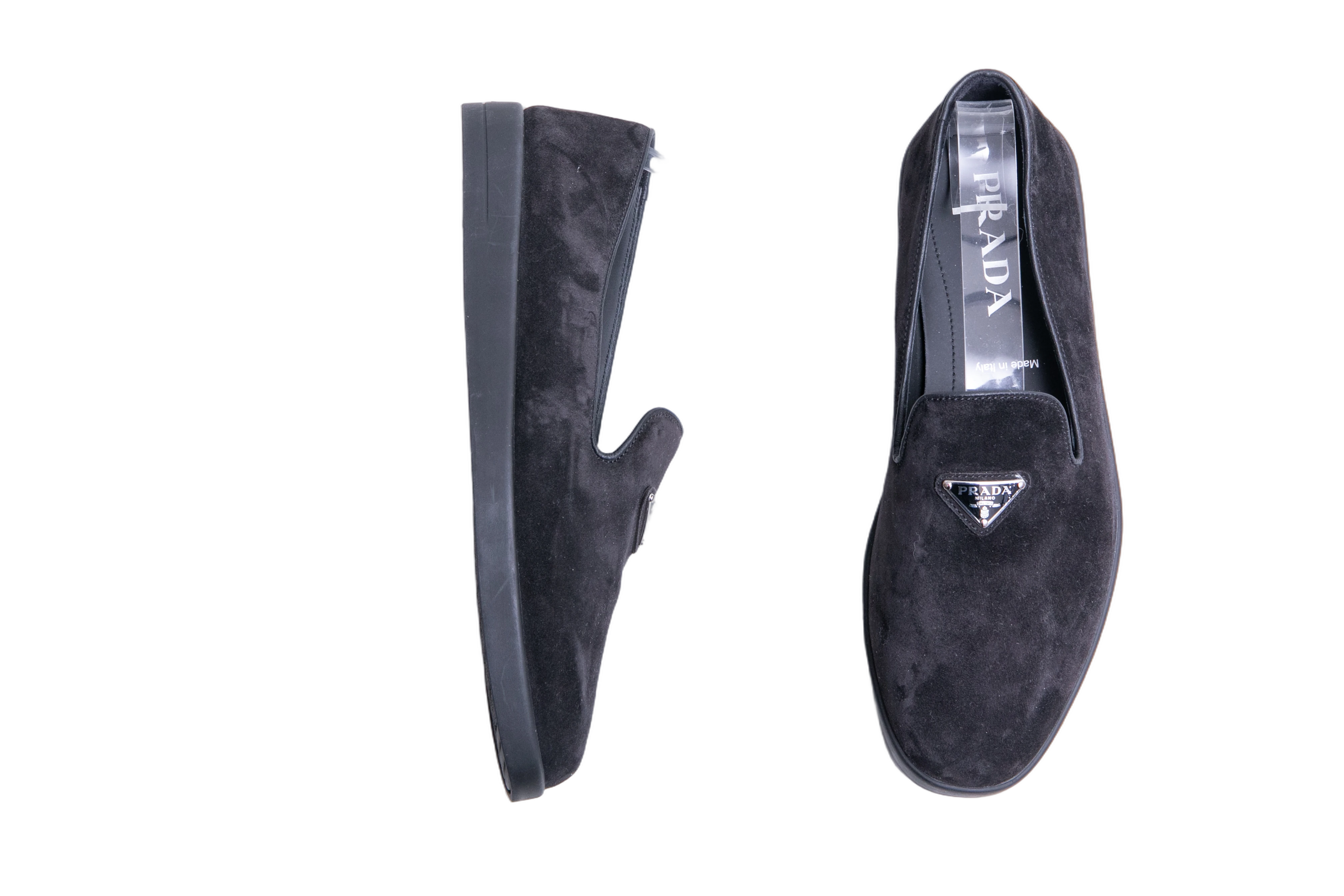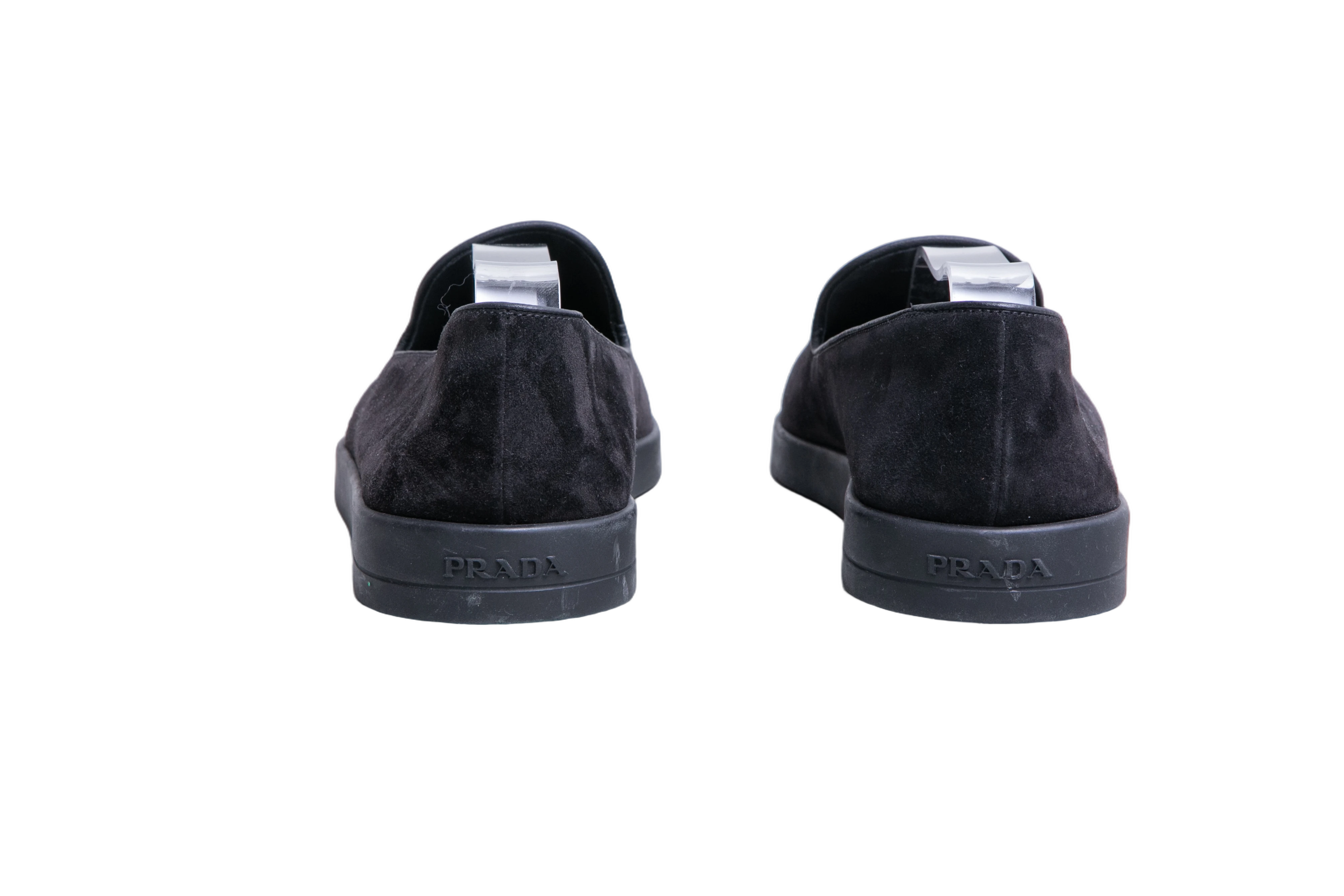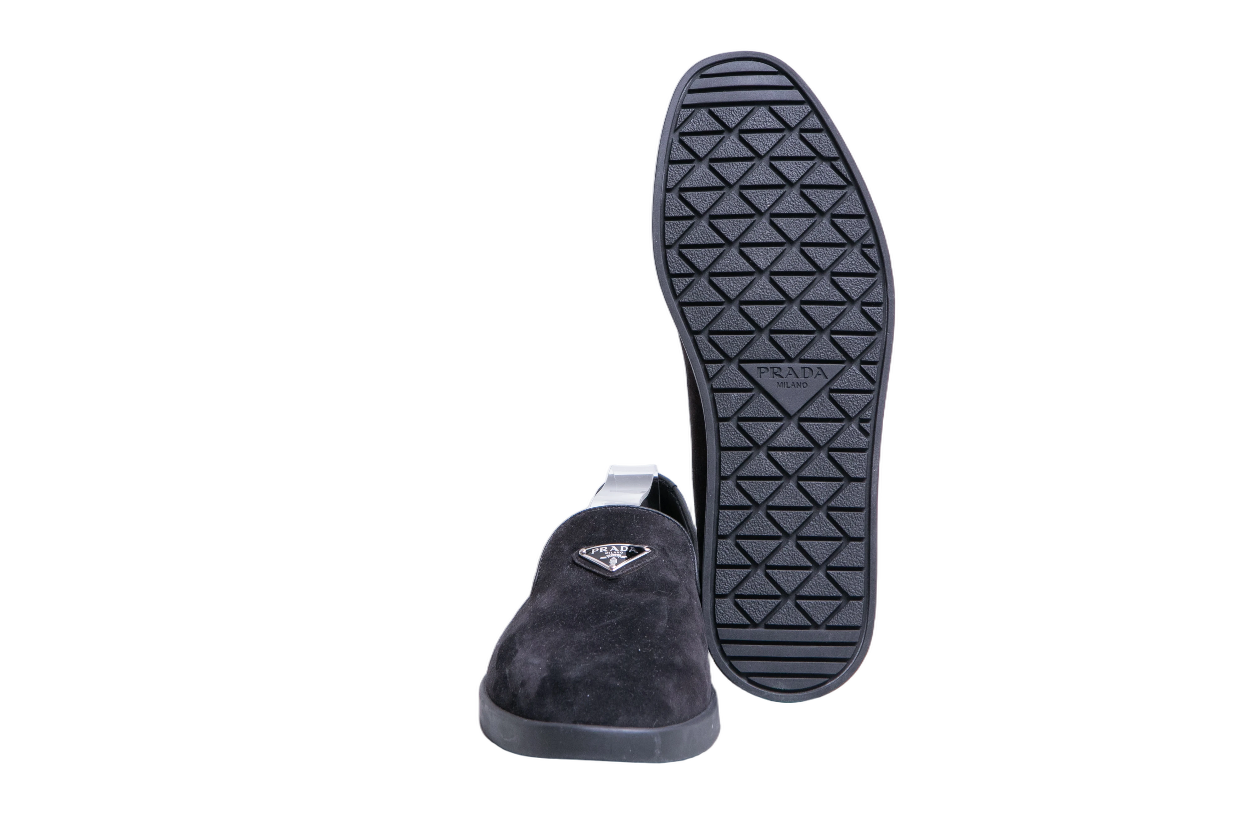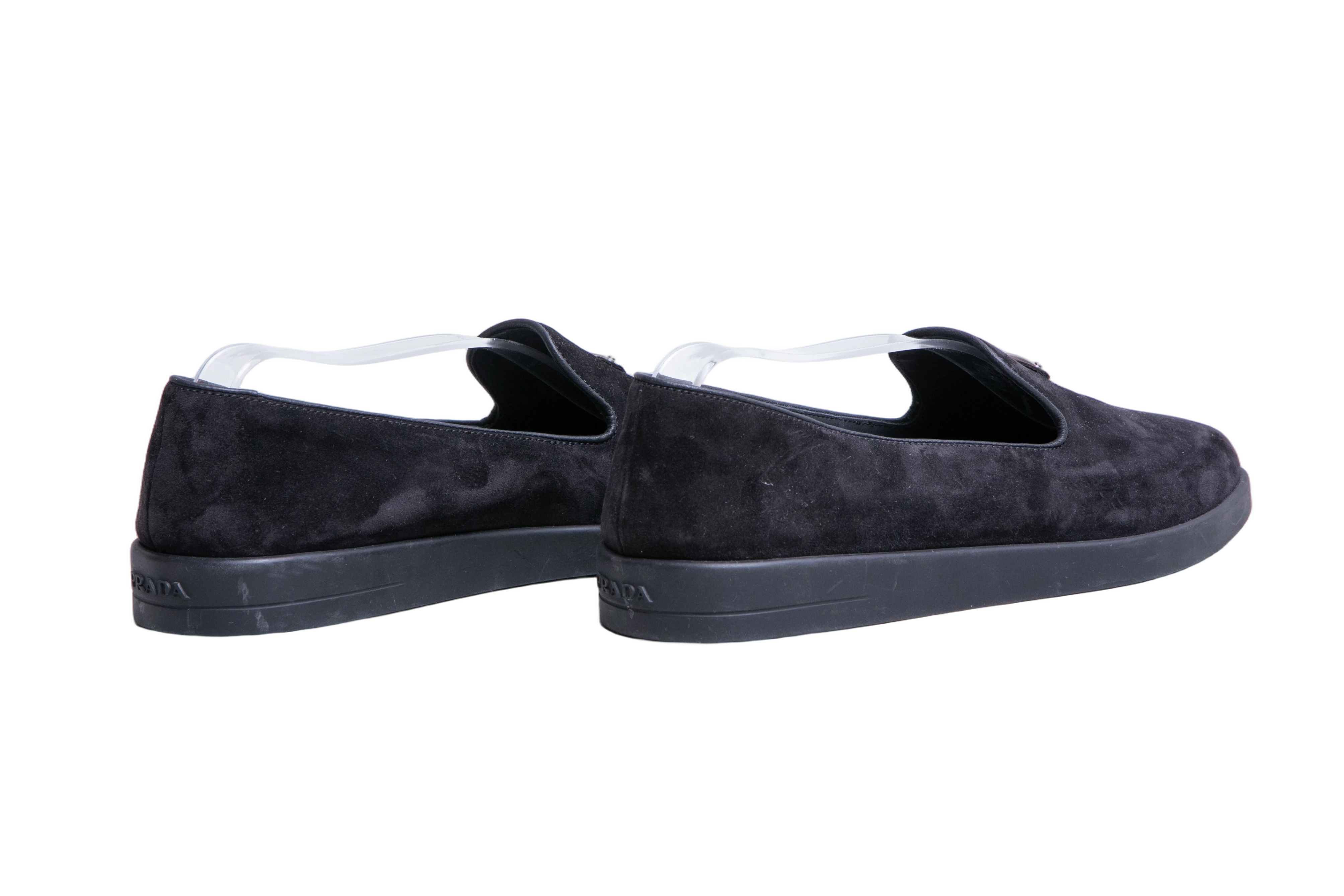Prada Loafer Logo Plaque Suede Black. Peça como nova, sem uso porém sem tag.