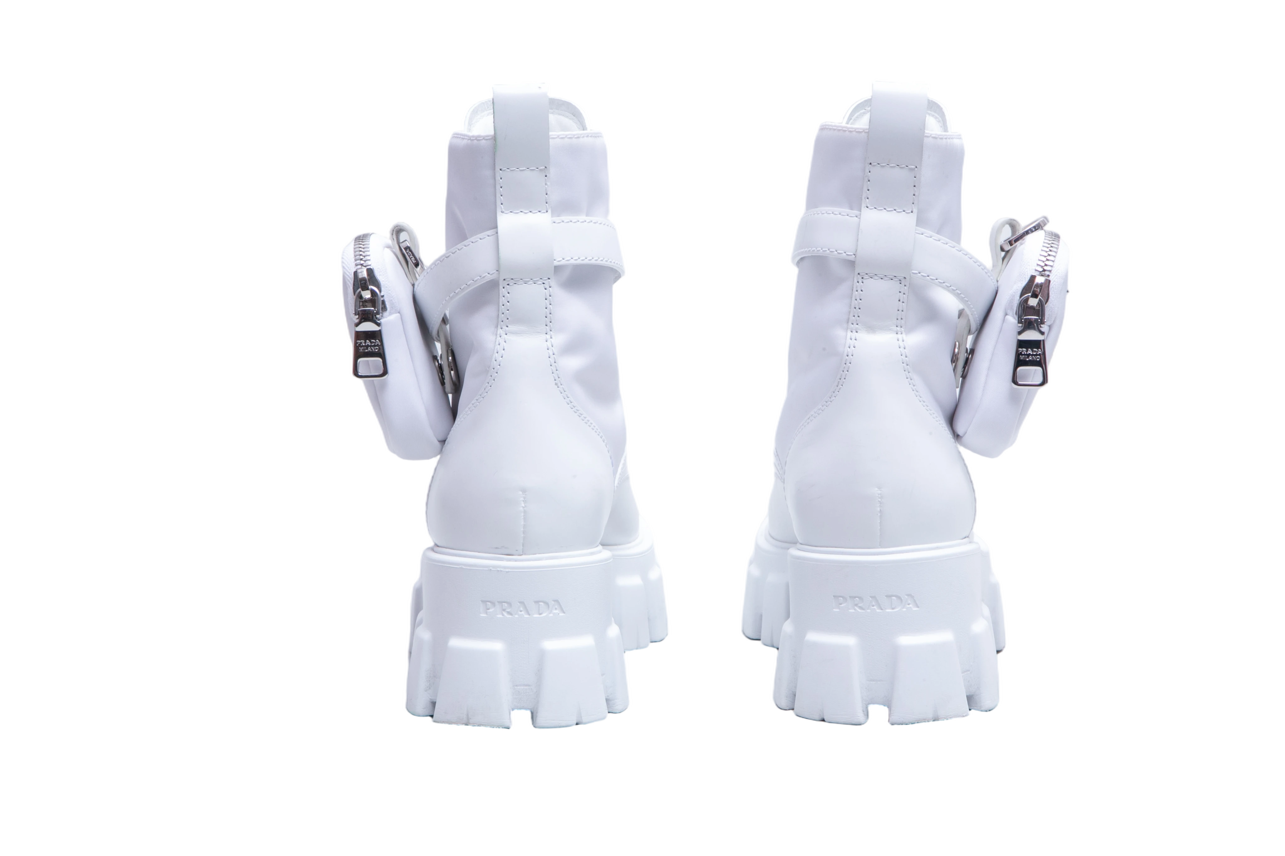 Prada Monolith Re-Nylon White. Peça em perfeito estado, possui pequenos sinais de uso no couro.