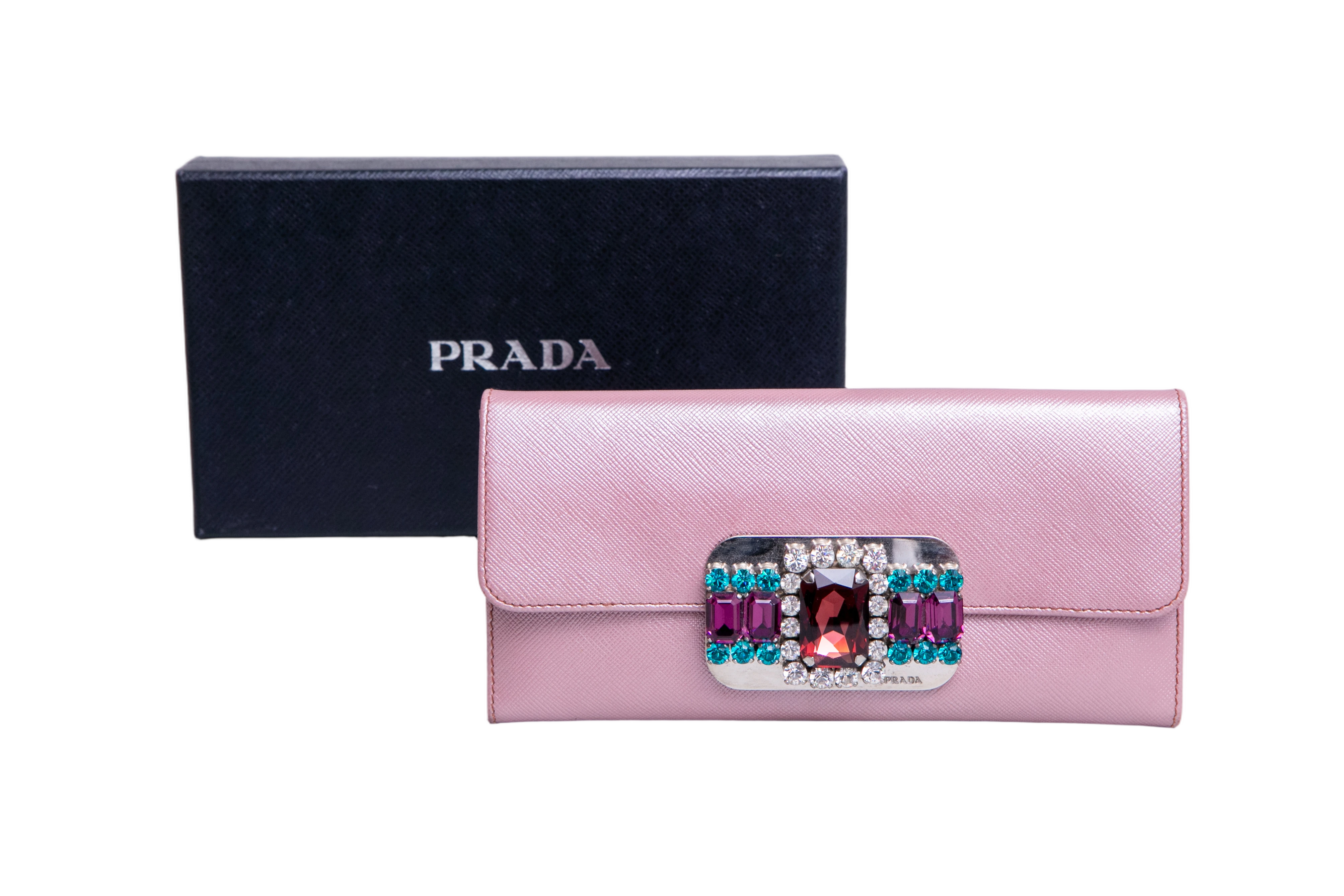Prada Saffiano Stones Wallet Antico. Peça em perfeito estado, possui pequenos sinais de uso no couro.