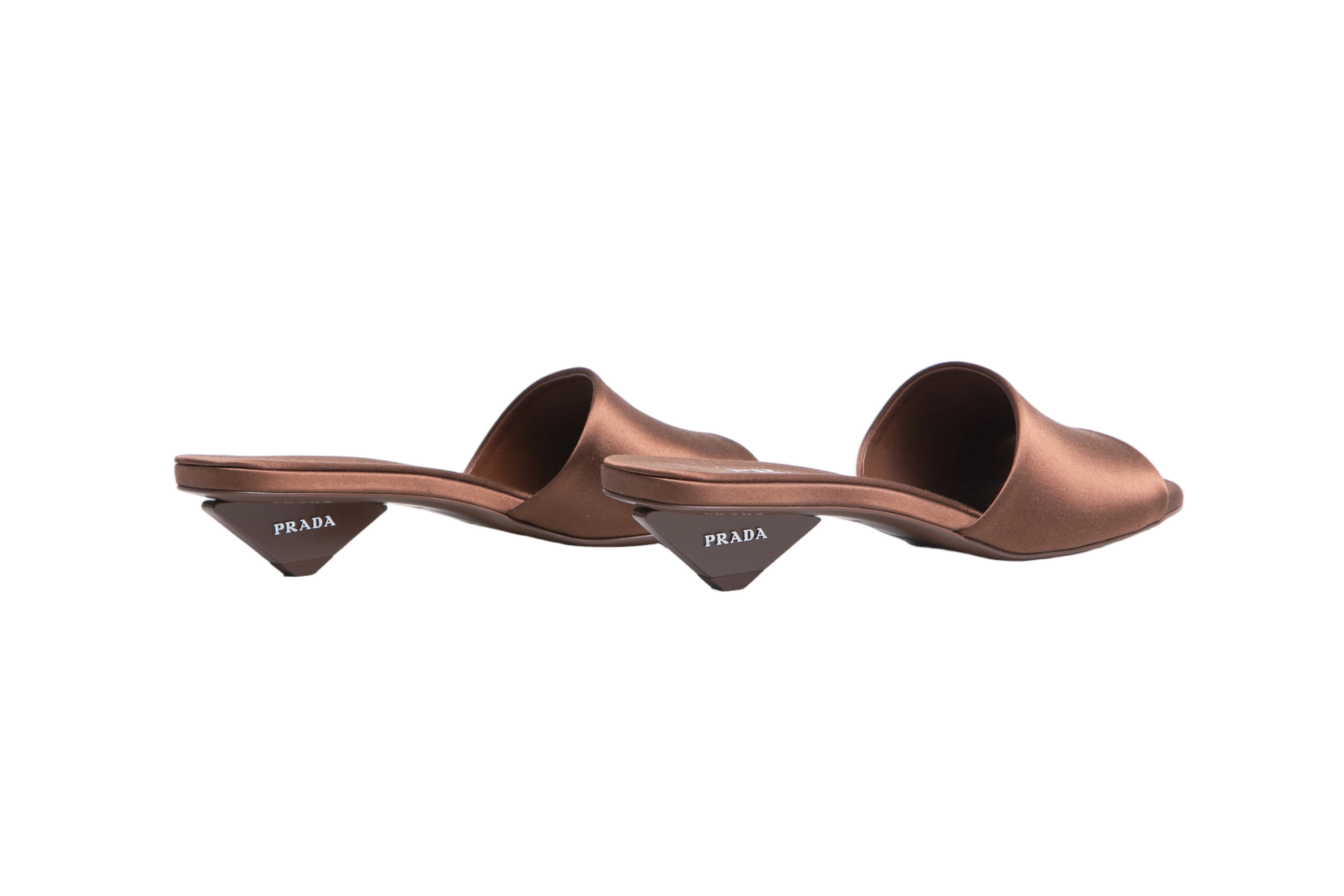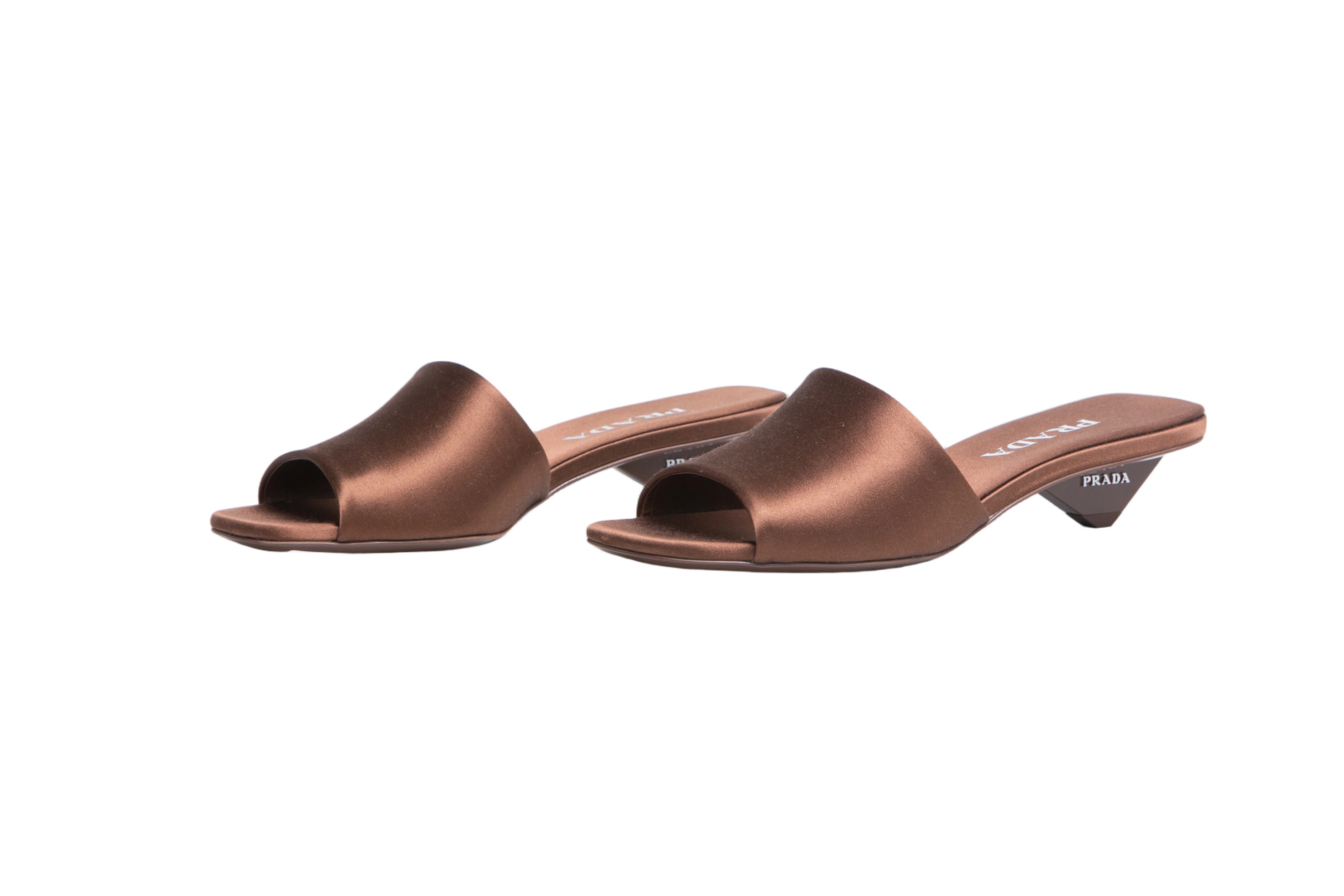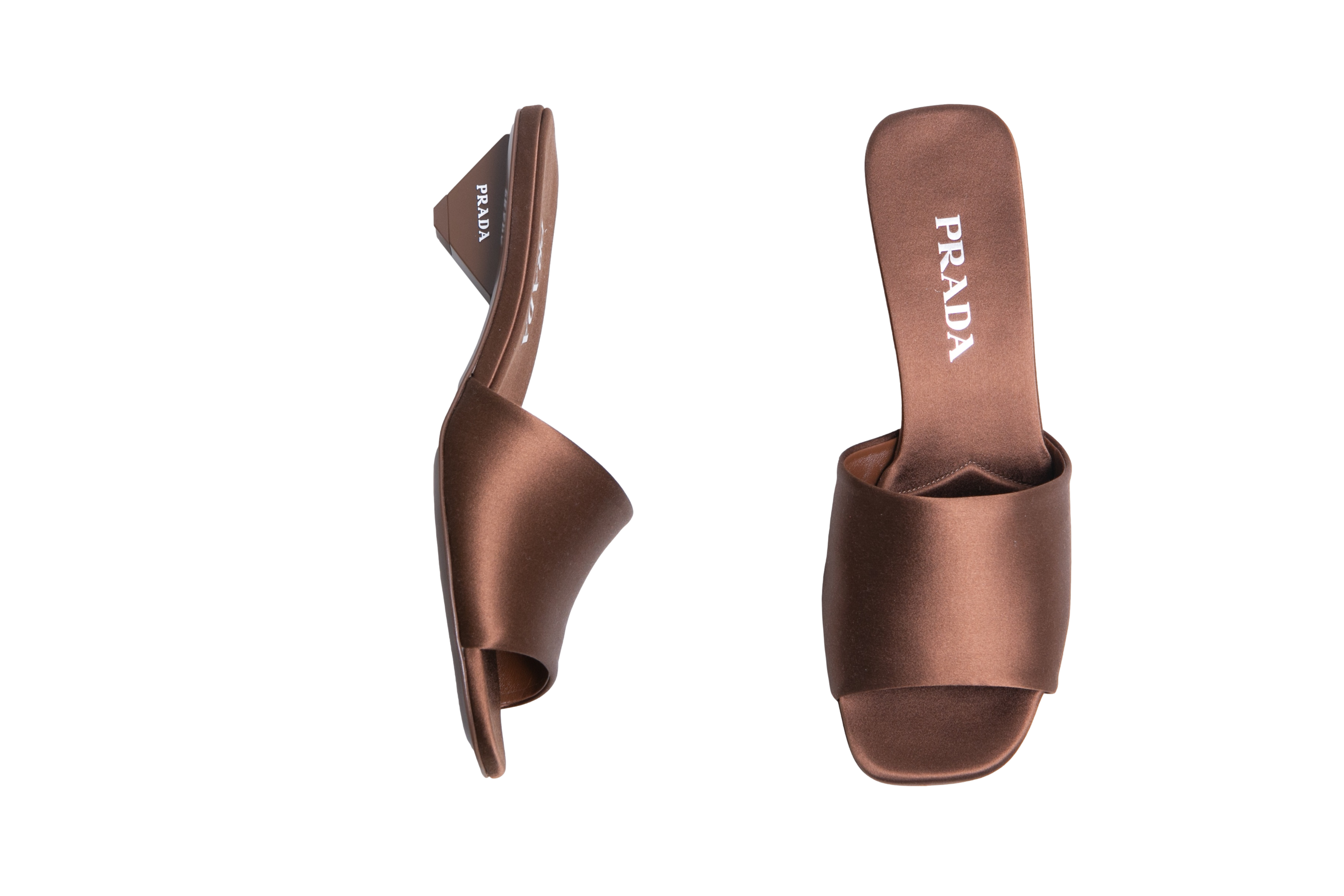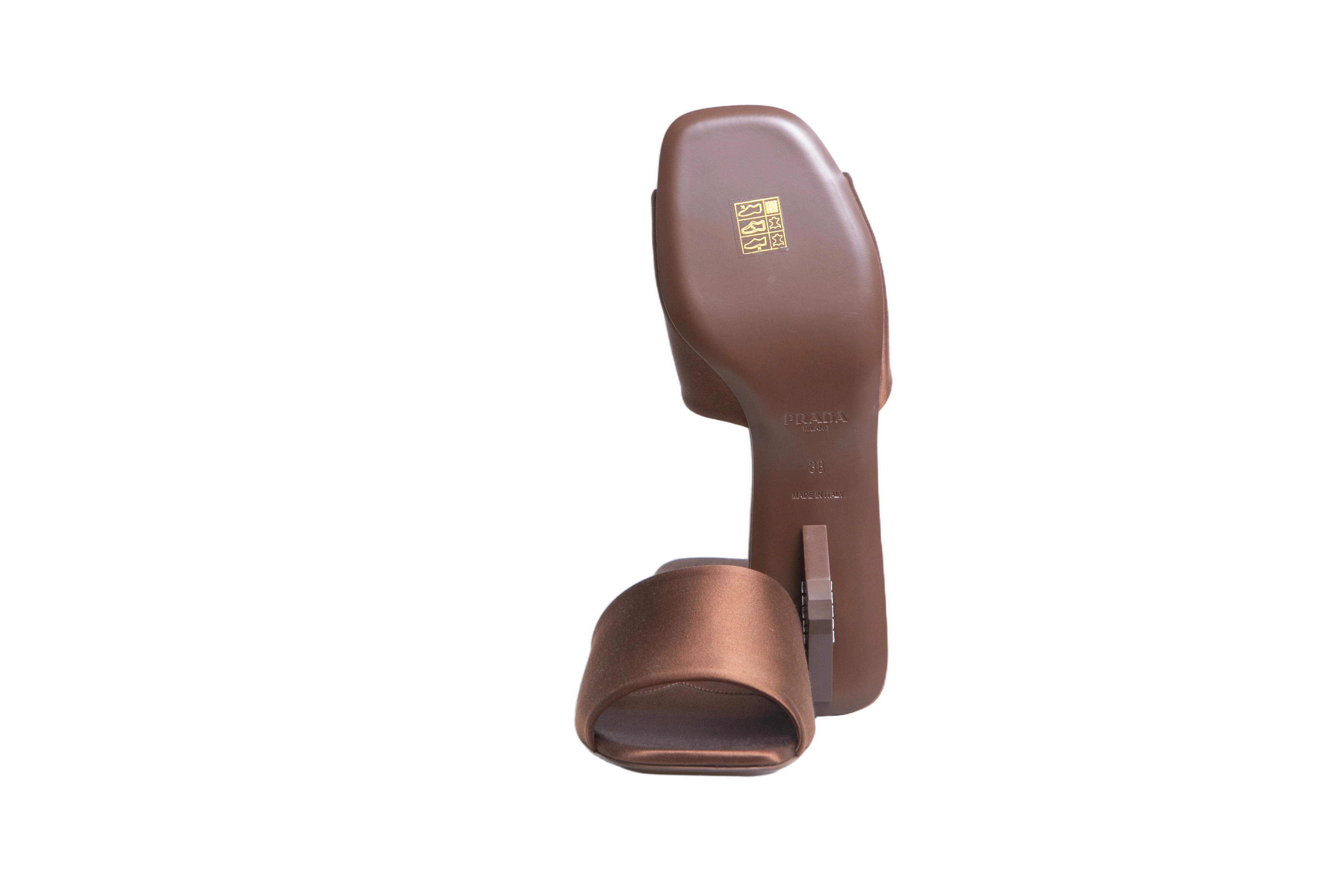 Prada Square-Toe Satin Mule Brown. Peça como nova, sem uso porém sem tag.