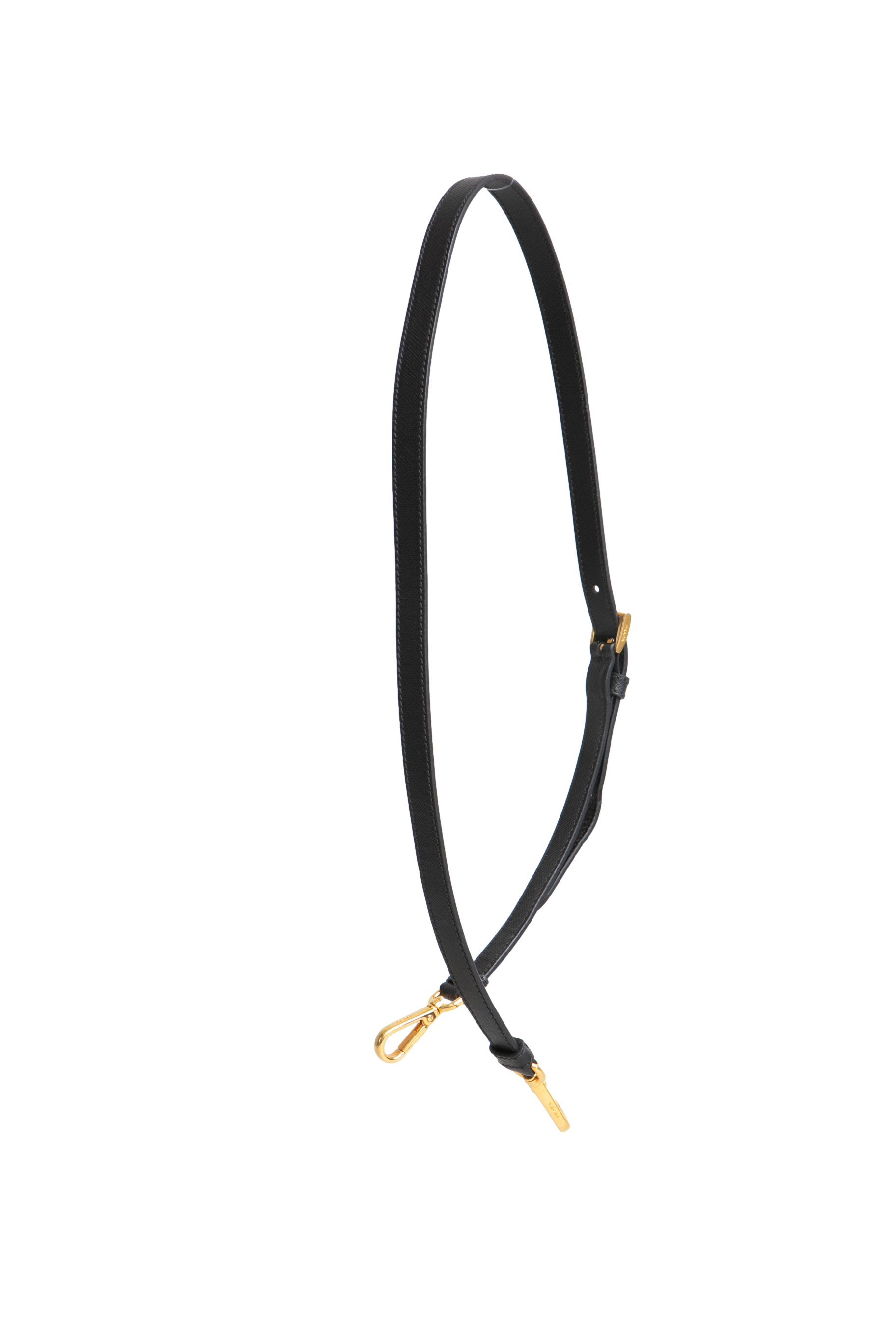 Alça longa removível e ajustável em couro preto liso com ferragens gold.