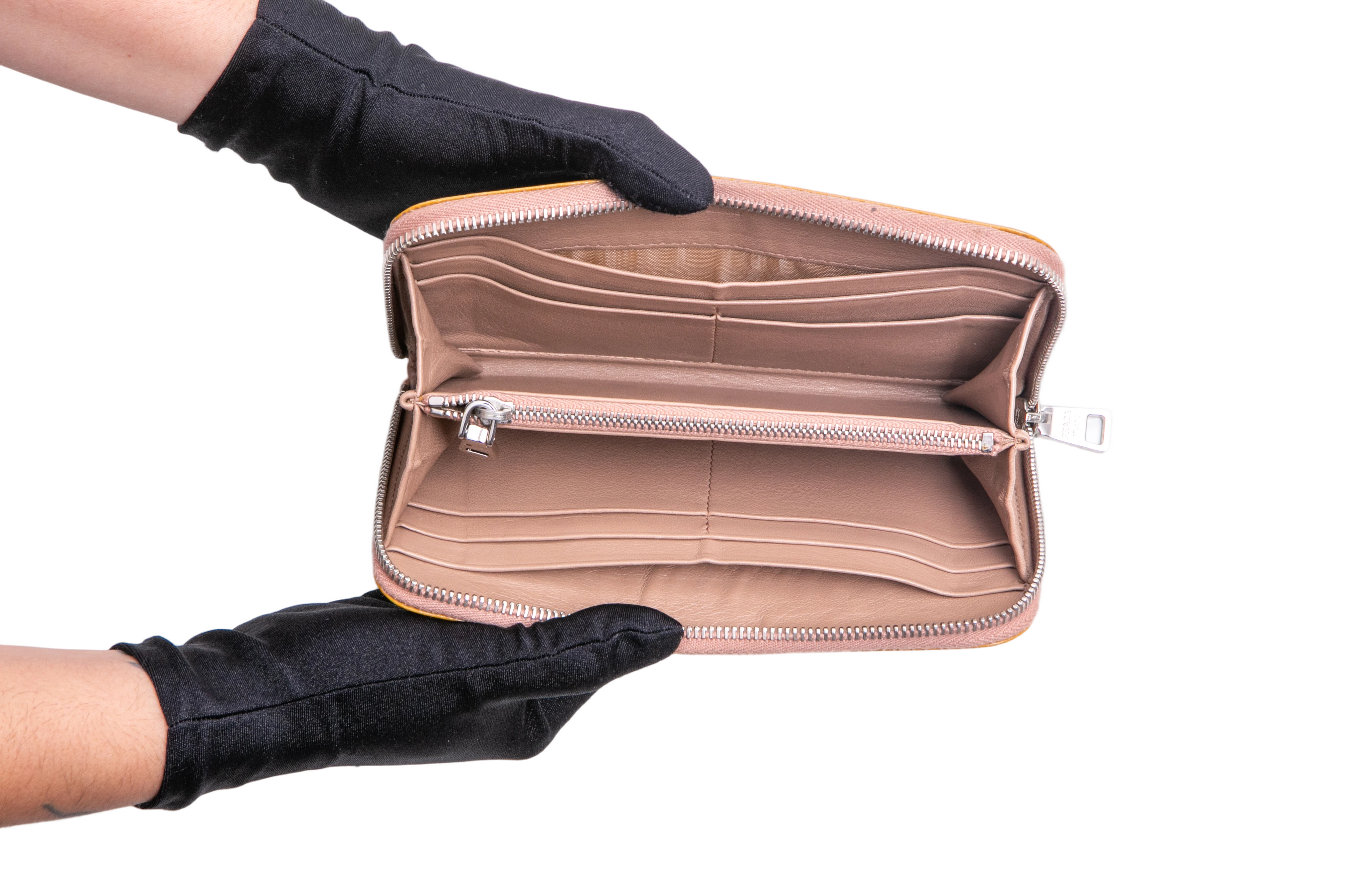 Prada Wallet Continental Studded Zip Around Camel. Peça em ótimo estado, possui sinais no tecido.