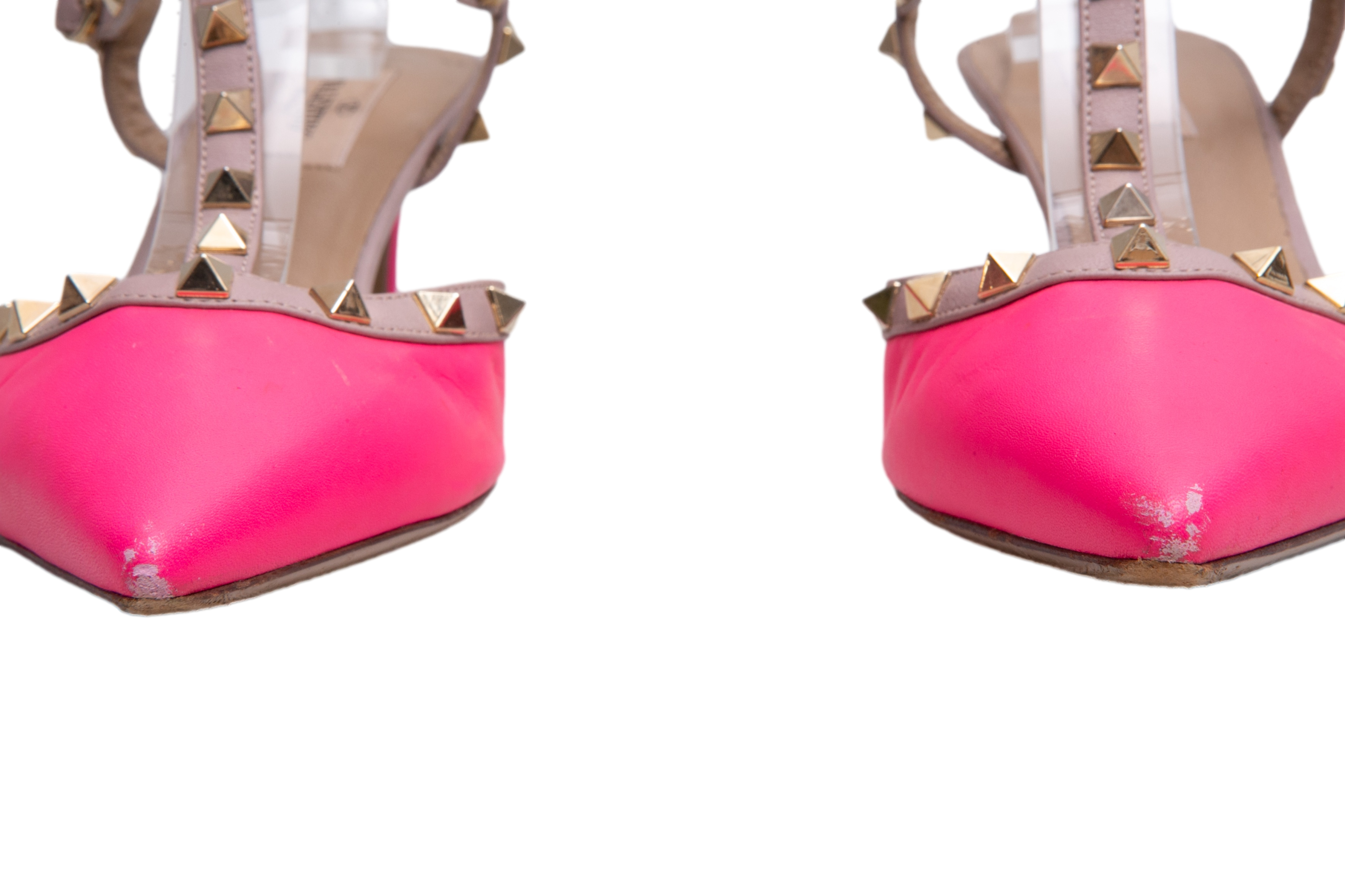 Valentino Scarpin Rockstud Pink & Beige. Peça em bom estado, sinais na sola, manchas no salto e desgaste no bico.