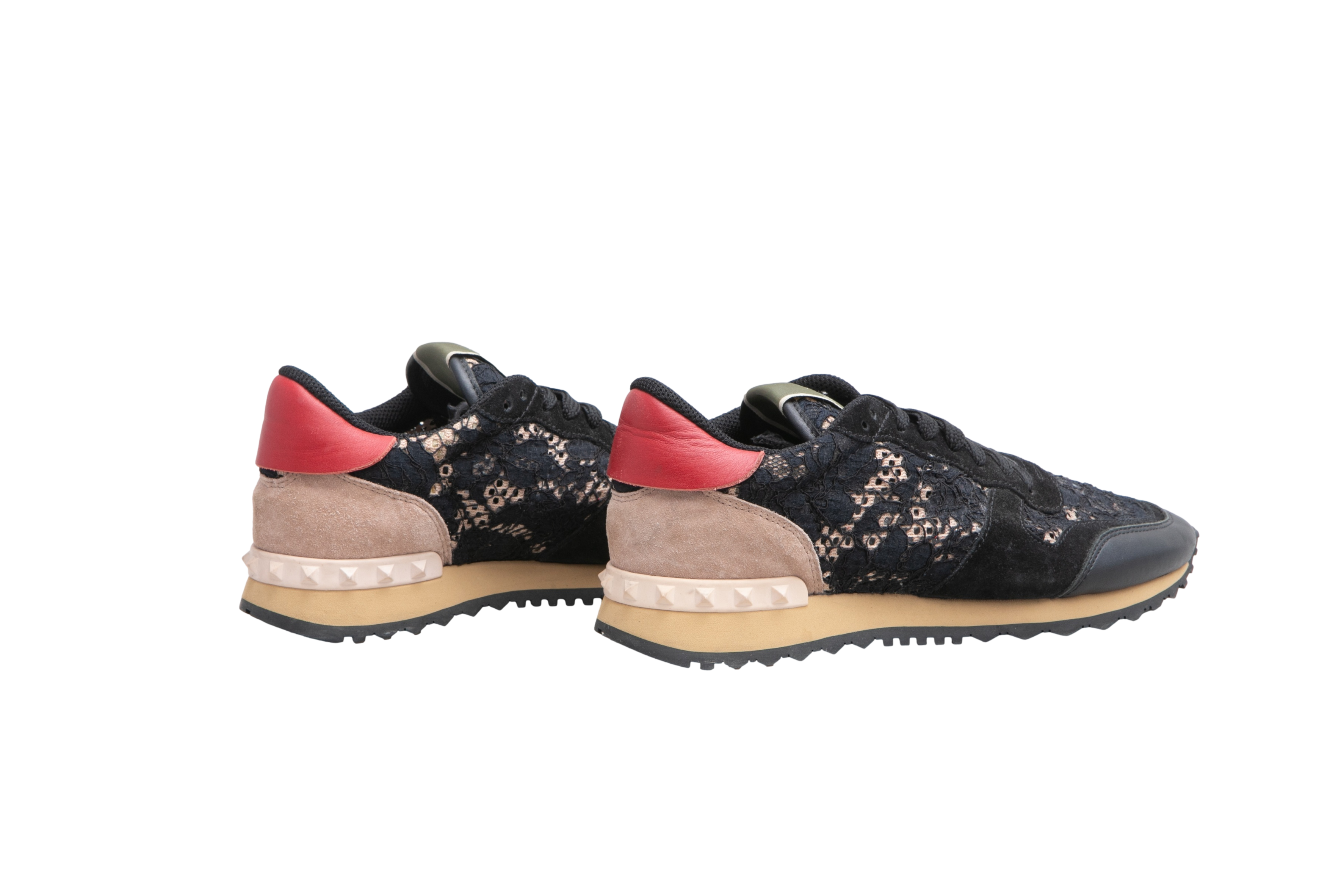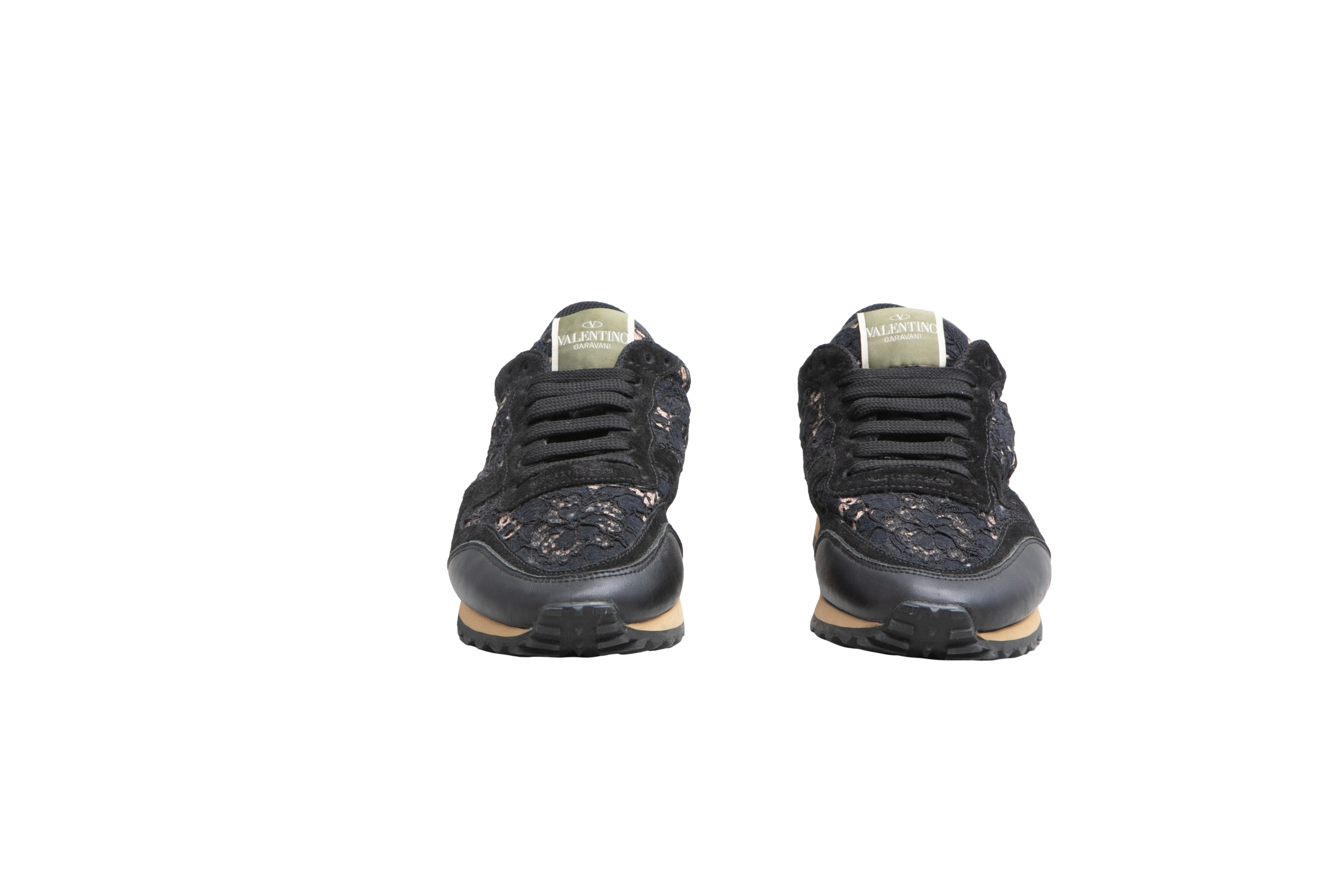Fabricado na Itália, o Tênis Valentino Rockrunner Lace Woman Black reflete a excelência artesanal da marca, sendo uma escolha ideal para compor looks casuais com um toque de luxo e personalidade.