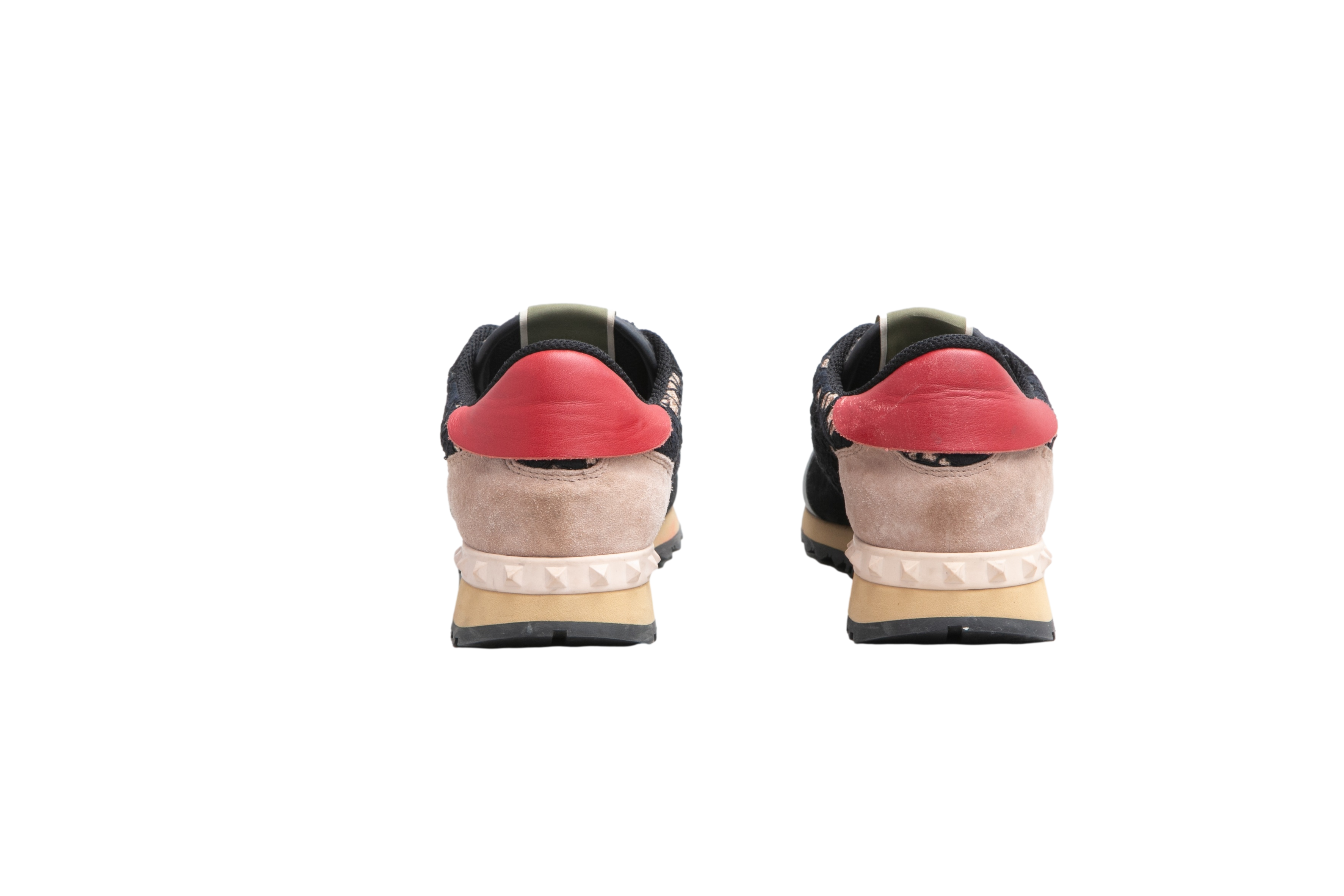 Um dos elementos distintivos deste modelo são os icônicos rebites Rockstud da Valentino, posicionados estrategicamente no calcanhar, adicionando um toque de ousadia e identidade à peça. A entressola de borracha oferece amortecimento eficaz, garantindo conforto ao longo do dia, enquanto o solado de borracha proporciona tração e durabilidade.