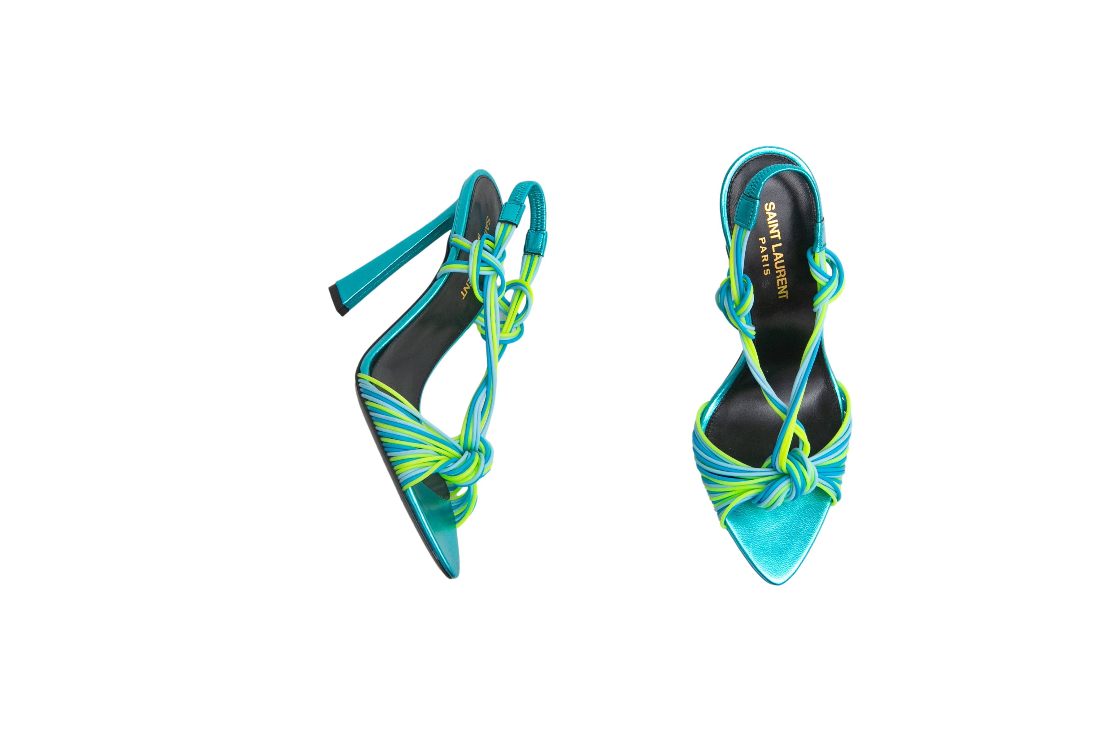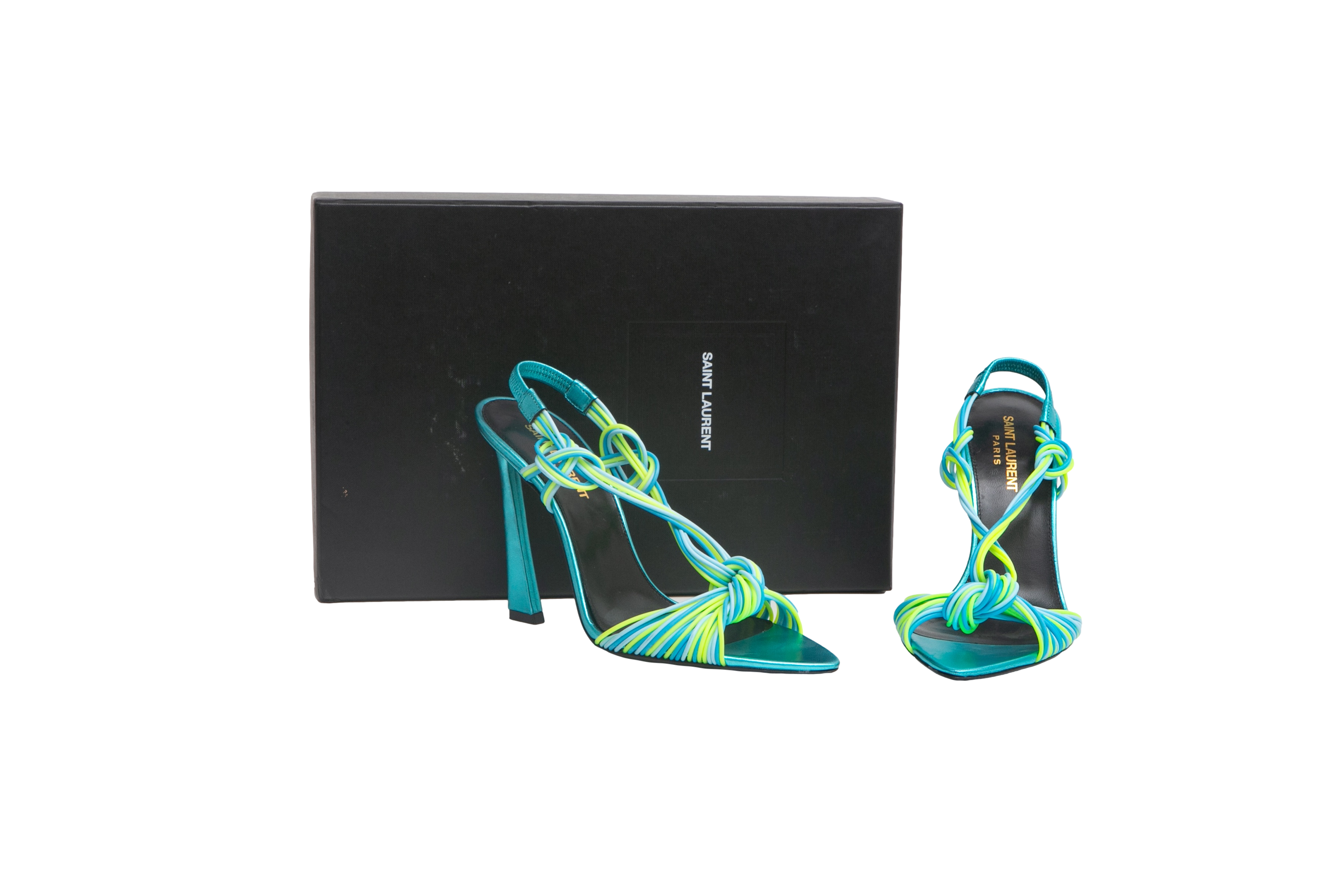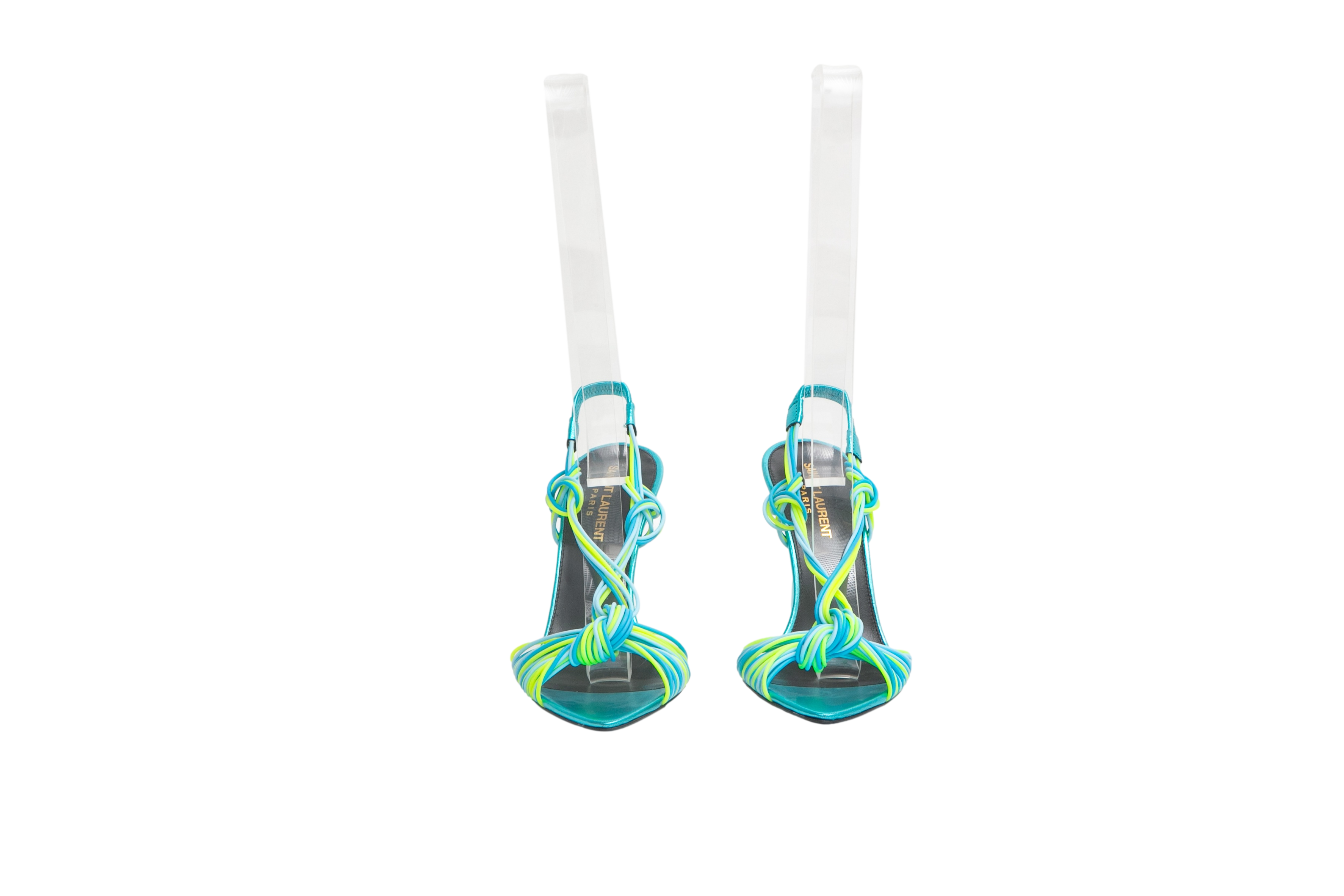 YSL Sandal Pool 105 Scoubi Cerulean & Giallo Fluo. Peça como nova, sem uso porém sem tag.